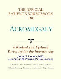 Since the late 1990s, physicians have seen a general increase in patient Internet usage rates. Patients frequently enter their doctor’s offices with printed Web pages of home remedies in the guise of latest medical research. This scenario is so common that doctors often spend more time dispelling misleading information than guiding patients through sound therapies. The Official Patient’s Sourcebook on Acromegaly has been created for patients who have decided to make education and research an integral part of the treatment process. The pages that follow will tell you where and how to look for information covering virtually all topics related to acromegaly, from the essentials to the most advanced areas of research. The title of this book includes the word “official.” This reflects the fact that the sourcebook draws from public, academic, government, and peer-reviewed research. Selected readings from various agencies are reproduced to give you some of the latest official information available to date on acromegaly. Given patients’ increasing sophistication in using the Internet, abundant references to reliable Internet-based resources are provided throughout this sourcebook. Where possible, guidance is provided on how to obtain free-of-charge, primary research results as well as more detailed information via the Internet. E-book and electronic versions of this sourcebook are fully interactive with each of the Internet sites mentioned (clicking on a hyperlink automatically opens your browser to the site indicated). Hard copy users of this sourcebook can type cited Web addresses directly into their browsers to obtain access to the corresponding sites. Since we are working with ICON Health Publications, hard copy Sourcebooks are frequently updated and printed on demand to ensure that the information provided is current. In addition to extensive references accessible via the Internet, every chapter presents a “Vocabulary Builder.” Many health guides offer glossaries of technical or uncommon terms in an appendix. In editing this sourcebook, we have decided to place a smaller glossary within each chapter that covers terms used in that chapter. Given the technical nature of some chapters, you may need to revisit many sections. Building one’s vocabulary of medical terms in such a gradual manner has been shown to improve the learning process. We must emphasize that no sourcebook on acromegaly should affirm that a specific diagnostic procedure or treatment discussed in a research study, patent, or doctoral dissertation is “correct” or your best option. This sourcebook is no exception. Each patient is unique. Deciding on appropriate options is always up to the patient in consultation with their physician and healthcare providers. Organization This sourcebook is organized into three parts. Part I explores basic techniques to researching acromegaly (e.g. finding guidelines on diagnosis, treatments, and prognosis), followed by a number of topics, including information on how to get in touch with organizations, associations, or other patient networks dedicated to acromegaly. It also gives you sources of information that can help you find a doctor in your local area specializing in treating acromegaly. Collectively, the material presented in Part I is a complete primer on basic research topics for patients with acromegaly. Part II moves on to advanced research dedicated to acromegaly. Part II is intended for those willing to invest many hours of hard work and study. It is here that we direct you to the latest scientific and applied research on acromegaly. When possible, contact names, links via the Internet, and summaries are provided. It is in Part II where the vocabulary process becomes important as authors publishing advanced research frequently use highly specialized language. In general, every attempt is made to recommend “free-to-use” options. Part III provides appendices of useful background reading for all patients with acromegaly or related disorders. The appendices are dedicated to more pragmatic issues faced by many patients with acromegaly. Accessing materials via medical libraries may be the only option for some readers, so a guide is provided for finding local medical libraries which are open to the public. Part III, therefore, focuses on advice that goes beyond the biological and scientific issues facing patients with acromegaly. Scope While this sourcebook covers acromegaly, your doctor, research publications, and specialists may refer to your condition using a variety of terms. Therefore, you should understand that acromegaly is often considered a synonym or a condition closely related to the following: