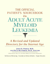 This book has been created for patients who have decided to make education and research an integral part of the treatment process. Although it also gives information useful to doctors, caregivers and other health professionals, it tells patients where and how to look for information covering virtually all topics related to adult acute myeloid leukemia (also Acute granulocytic leukemia; acute myelocytic leukemia; Acute myeloid leukemia; Acute nonlymphoblastic leukemia; Acute nonlymphocytic leukemia), from the essentials to the most advanced areas of research. The title of this book includes the word official. This reflects the fact that the sourcebook draws from public, academic, government, and peer-reviewed research. Selected readings from various agencies are reproduced to give you some of the latest official information available to date on adult acute myeloid leukemia. Given patients' increasing sophistication in using the Internet, abundant references to reliable Internet-based resources are provided throughout this sourcebook. Where possible, guidance is provided on how to obtain free-of-charge, primary research results as well as more detailed information via the Internet. E-book and electronic versions of this sourcebook are fully interactive with each of the Internet sites mentioned (clicking on a hyperlink automatically opens your browser to the site indicated). Hard-copy users of this sourcebook can type cited Web addresses directly into their browsers to obtain access to the corresponding sites. In addition to extensive references accessible via the Internet, chapters include glossaries of technical or uncommon terms. |