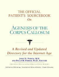 Since the late 1990s, physicians have seen a general increase in patient Internet usage rates. Patients frequently enter their doctor’s offices with printed Web pages of home remedies in the guise of latest medical research. This scenario is so common that doctors often spend more time dispelling misleading information than guiding patients through sound therapies. The Official Patient’s Sourcebook on Agenesis of the Corpus Callosum has been created for patients who have decided to make education and research an integral part of the treatment process. The pages that follow will tell you where and how to look for information covering virtually all topics related to agenesis of the corpus callosum, from the essentials to the most advanced areas of research. The title of this book includes the word “official.” This reflects the fact that the sourcebook draws from public, academic, government, and peer-reviewed research. Selected readings from various agencies are reproduced to give you some of the latest official information available to date on agenesis of the corpus callosum. Given patients’ increasing sophistication in using the Internet, abundant references to reliable Internet-based resources are provided throughout this sourcebook. Where possible, guidance is provided on how to obtain free-of-charge, primary research results as well as more detailed information via the Internet. E-book and electronic versions of this sourcebook are fully interactive with each of the Internet sites mentioned (clicking on a hyperlink automatically opens your browser to the site indicated). Hard copy users of this sourcebook can type cited Web addresses directly into their browsers to obtain access to the corresponding sites. Since we are working with ICON Health Publications, hard copy Sourcebooks are frequently updated and printed on demand to ensure that the information provided is current. In addition to extensive references accessible via the Internet, every chapter presents a “Vocabulary Builder.” Many health guides offer glossaries of technical or uncommon terms in an appendix. In editing this sourcebook, we have decided to place a smaller glossary within each chapter that covers terms used in that chapter. Given the technical nature of some chapters, you may need to revisit many sections. Building one’s vocabulary of medical terms in such a gradual manner has been shown to improve the learning process. We must emphasize that no sourcebook on agenesis of the corpus callosum should affirm that a specific diagnostic procedure or treatment discussed in a research study, patent, or doctoral dissertation is “correct” or your best option. This sourcebook is no exception. Each patient is unique. Deciding on appropriate options is always up to the patient in consultation with their physician and healthcare providers. Organization This sourcebook is organized into three parts. Part I explores basic techniques to researching agenesis of the corpus callosum (e.g. finding guidelines on diagnosis, treatments, and prognosis), followed by a number of topics, including information on how to get in touch with organizations, associations, or other patient networks dedicated to agenesis of the corpus callosum. It also gives you sources of information that can help you find a doctor in your local area specializing in treating agenesis of the corpus callosum. Collectively, the material presented in Part I is a complete primer on basic research topics for patients with agenesis of the corpus callosum. Part II moves on to advanced research dedicated to agenesis of the corpus callosum. Part II is intended for those willing to invest many hours of hard work and study. It is here that we direct you to the latest scientific and applied research on agenesis of the corpus callosum. When possible, contact names, links via the Internet, and summaries are provided. It is in Part II where the vocabulary process becomes important as authors publishing advanced research frequently use highly specialized language. In general, every attempt is made to recommend “free-to-use” options. Part III provides appendices of useful background reading for all patients with agenesis of the corpus callosum or related disorders. The appendices are dedicated to more pragmatic issues faced by many patients with agenesis of the corpus callosum. Accessing materials via medical libraries may be the only option for some readers, so a guide is provided for finding local medical libraries which are open to the public. Part III, therefore, focuses on advice that goes beyond the biological and scientific issues facing patients with agenesis of the corpus callosum. Scope While this sourcebook covers agenesis of the corpus callosum, your doctor, research publications, and specialists may refer to your condition using a variety of terms. Therefore, you should understand that agenesis of the corpus callosum is often considered a synonym or a condition closely related to the following: