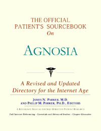 Since the late 1990s, physicians have seen a general increase in patient Internet usage rates. Patients frequently enter their doctor's offices with printed Web pages of home remedies in the guise of latest medical research. This scenario is so common that doctors often spend more time dispelling misleading information than guiding patients through sound therapies. The Official Patient’s Sourcebook on Agnosia has been created for patients who have decided to make education and research an integral part of the treatment process. The pages that follow will tell you where and how to look for information covering virtually all topics related to agnosia, from the essentials to the most advanced areas of research. The title of this book includes the word “official.” This reflects the fact that the sourcebook draws from public, academic, government, and peer-reviewed research. Selected readings from various agencies are reproduced to give you some of the latest official information available to date on agnosia. Given patients’ increasing sophistication in using the Internet, abundant references to reliable Internet-based resources are provided throughout this sourcebook. Where possible, guidance is provided on how to obtain free-of-charge, primary research results as well as more detailed information via the Internet. E-book and electronic versions of this sourcebook are fully interactive with each of the Internet sites mentioned (clicking on a hyperlink automatically opens your browser to the site indicated). Hard copy users of this sourcebook can type cited Web addresses directly into their browsers to obtain access to the corresponding sites. Since we are working with ICON Health Publications, hard copy Sourcebooks are frequently updated and printed on demand to ensure that the information provided is current. In addition to extensive references accessible via the Internet, every chapter presents a “Vocabulary Builder.” Many health guides offer glossaries of technical or uncommon terms in an appendix. In editing this sourcebook, we have decided to place a smaller glossary within each chapter that covers terms used in that chapter. Given the technical nature of some chapters, you may need to revisit many sections. Building one’s vocabulary of medical terms in such a gradual manner has been shown to improve the learning process. We must emphasize that no sourcebook on agnosia should affirm that a specific diagnostic procedure or treatment discussed in a research study, patent, or doctoral dissertation is “correct” or your best option. This sourcebook is no exception. Each patient is unique. Deciding on appropriate options is always up to the patient in consultation with their physician and healthcare providers. Organization This sourcebook is organized into three parts. Part I explores basic techniques to researching agnosia (e.g. finding guidelines on diagnosis, treatments, and prognosis), followed by a number of topics, including information on how to get in touch with organizations, associations, or other patient networks dedicated to agnosia. It also gives you sources of information that can help you find a doctor in your local area specializing in treating agnosia. Collectively, the material presented in Part I is a complete primer on basic research topics for patients with agnosia. Part II moves on to advanced research dedicated to agnosia. Part II is intended for those willing to invest many hours of hard work and study. It is here that we direct you to the latest scientific and applied research on agnosia. When possible, contact names, links via the Internet, and summaries are provided. It is in Part II where the vocabulary process becomes important as authors publishing advanced research frequently use highly specialized language. In general, every attempt is made to recommend “free-to-use” options. Part III provides appendices of useful background reading for all patients with agnosia or related disorders. The appendices are dedicated to more pragmatic issues faced by many patients with agnosia. Accessing materials via medical libraries may be the only option for some readers, so a guide is provided for finding local medical libraries which are open to the public. Part III, therefore, focuses on advice that goes beyond the biological and scientific issues facing patients with agnosia. Scope While this sourcebook covers agnosia, your doctor, research publications, and specialists may refer to your condition using a variety of terms. Therefore, you should understand that agnosia is often considered a synonym or a condition closely related to the following:
