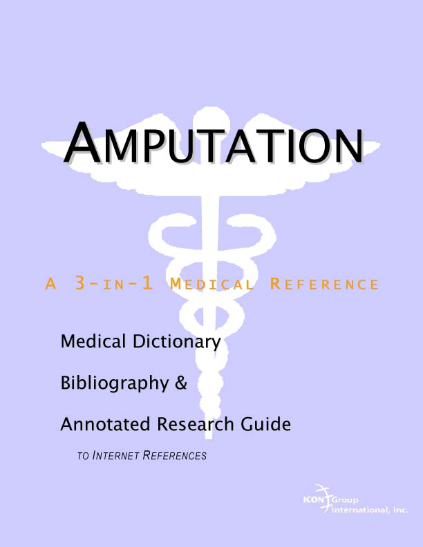 Forward Chapter 1. Studies on Amputation Overview The Combined Health Information Database Federally Funded Research on Amputation E-Journals: PubMed Central The National Library of Medicine: PubMed Chapter 2. Nutrition and Amputation Overview Finding Nutrition Studies on Amputation Federal Resources on Nutrition Additional Web Resources Chapter 3. Alternative Medicine and Amputation Overview National Center for Complementary and Alternative Medicine Additional Web Resources General References Chapter 4. Dissertations on Amputation Overview Dissertations on Amputation Keeping Current Chapter 5. Clinical Trials and Amputation Overview Recent Trials on Amputation Keeping Current on Clinical Trials Chapter 6. Patents on Amputation Overview Patents on Amputation Patent Applications on Amputation Keeping Current Chapter 7. Books on Amputation Overview Book Summaries: Federal Agencies Book Summaries: Online Booksellers The National Library of Medicine Book Index Chapters on Amputation Chapter 8. Multimedia on Amputation Overview Video Recordings Bibliography: Multimedia on Amputation Chapter 9. Periodicals and News on Amputation Overview News Services and Press Releases Newsletter Articles Academic Periodicals covering Amputation Appendix A. Physician Resources Overview NIH Guidelines NIH Databases Other Commercial Databases Appendix B. Patient Resources Overview Patient Guideline Sources Associations and Amputation Finding Associations Appendix C. Finding Medical Libraries Overview Preparation Finding a Local Medical Library Medical Libraries in the U.S. and Canada ONLINE GLOSSARIES Online Dictionary Directories AMPUTATION DICTIONARY INDEX |