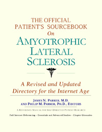 Since the late 1990s, physicians have seen a general increase in patient Internet usage rates. Patients frequently enter their doctor’s offices with printed Web pages of home remedies in the guise of latest medical research. This scenario is so common that doctors often spend more time dispelling misleading information than guiding patients through sound therapies. The Official Patient’s Sourcebook on Amyotrophic Lateral Sclerosis has been created for patients who have decided to make education and research an integral part of the treatment process. The pages that follow will tell you where and how to look for information covering virtually all topics related to amyotrophic lateral sclerosis, from the essentials to the most advanced areas of research. The title of this book includes the word “official.” This reflects the fact that the sourcebook draws from public, academic, government, and peer-reviewed research. Selected readings from various agencies are reproduced to give you some of the latest official information available to date on amyotrophic lateral sclerosis. Given patients’ increasing sophistication in using the Internet, abundant references to reliable Internet-based resources are provided throughout this sourcebook. Where possible, guidance is provided on how to obtain free-of-charge, primary research results as well as more detailed information via the Internet. E-book and electronic versions of this sourcebook are fully interactive with each of the Internet sites mentioned (clicking on a hyperlink automatically opens your browser to the site indicated). Hard copy users of this sourcebook can type cited Web addresses directly into their browsers to obtain access to the corresponding sites. Since we are working with ICON Health Publications, hard copy Sourcebooks are frequently updated and printed on demand to ensure that the information provided is current. In addition to extensive references accessible via the Internet, every chapter presents a “Vocabulary Builder.” Many health guides offer glossaries of technical or uncommon terms in an appendix. In editing this sourcebook, we have decided to place a smaller glossary within each chapter that covers terms used in that chapter. Given the technical nature of some chapters, you may need to revisit many sections. Building one’s vocabulary of medical terms in such a gradual manner has been shown to improve the learning process. We must emphasize that no sourcebook on amyotrophic lateral sclerosis should affirm that a specific diagnostic procedure or treatment discussed in a research study, patent, or doctoral dissertation is “correct” or your best option. This sourcebook is no exception. Each patient is unique. Deciding on appropriate options is always up to the patient in consultation with their physician and healthcare providers. Organization This sourcebook is organized into three parts. Part I explores basic techniques to researching amyotrophic lateral sclerosis (e.g. finding guidelines on diagnosis, treatments, and prognosis), followed by a number of topics, including information on how to get in touch with organizations, associations, or other patient networks dedicated to amyotrophic lateral sclerosis. It also gives you sources of information that can help you find a doctor in your local area specializing in treating amyotrophic lateral sclerosis. Collectively, the material presented in Part I is a complete primer on basic research topics for patients with amyotrophic lateral sclerosis. Part II moves on to advanced research dedicated to amyotrophic lateral sclerosis. Part II is intended for those willing to invest many hours of hard work and study. It is here that we direct you to the latest scientific and applied research on amyotrophic lateral sclerosis. When possible, contact names, links via the Internet, and summaries are provided. It is in Part II where the vocabulary process becomes important as authors publishing advanced research frequently use highly specialized language. In general, every attempt is made to recommend “free-to-use” options. Part III provides appendices of useful background reading for all patients with amyotrophic lateral sclerosis or related disorders. The appendices are dedicated to more pragmatic issues faced by many patients with amyotrophic lateral sclerosis. Accessing materials via medical libraries may be the only option for some readers, so a guide is provided for finding local medical libraries which are open to the public. Part III, therefore, focuses on advice that goes beyond the biological and scientific issues facing patients with amyotrophic lateral sclerosis. Scope While this sourcebook covers amyotrophic lateral sclerosis, your doctor, research publications, and specialists may refer to your condition using a variety of terms. Therefore, you should understand that amyotrophic lateral sclerosis is often considered a synonym or a condition closely related to the following: