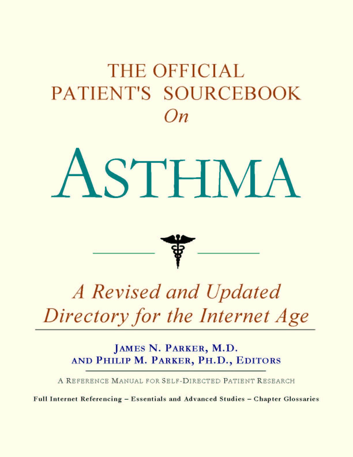 For the purposes of this sourcebook, we have attempted to be as inclusive as possible, looking for official information for all of the synonyms relevant to asthma. You may find it useful to refer to synonyms when accessing databases or interacting with healthcare professionals and medical librarians. Moving Forward Since the 1980s, the world has seen a proliferation of healthcare guides covering most illnesses. Some are written by patients or their family members. These generally take a layperson’s approach to understanding and coping with an illness or disorder. They can be uplifting, encouraging, and highly supportive. Other guides are authored by physicians or other healthcare providers who have a more clinical outlook. Each of these two styles of guide has its purpose and can be quite useful. As editors, we have chosen a third route. We have chosen to expose you to as many sources of official and peer-reviewed information as practical, for the purpose of educating you about basic and advanced knowledge as recognized by medical science today. You can think of this sourcebook as your personal Internet age reference librarian. Why “Internet age”? All too often, patients diagnosed with asthma will log on to the Internet, type words into a search engine, and receive several Web site listings which are mostly irrelevant or redundant. These patients are left to wonder where the relevant information is, and how to obtain it. Since only the smallest fraction of information dealing with asthma is even indexed in search engines, a non-systematic approach often leads to frustration and disappointment. With this sourcebook, we hope to direct you to the information you need that you would not likely find using popular Web directories. Beyond Web listings, in many cases we will reproduce brief summaries or abstracts of available reference materials. These abstracts often contain distilled information on topics of discussion. While we focus on the more scientific aspects of asthma, there is, of course, the emotional side to consider. Later in the sourcebook, we provide a chapter dedicated to helping you find peer groups and associations that can provide additional support beyond research produced by medical science. We hope that the choices we have made give you the most options available in moving forward. In this way, we wish you the best in your efforts to incorporate this educational approach into your treatment plan. |