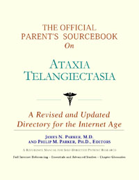 Since the late 1990s, physicians have seen a general increase in parent Internet usage rates. Parents frequently enter their children’s doctor’s offices with printed Web pages of home remedies in the guise of latest medical research. This scenario is so common that doctors often spend more time dispelling misleading information than guiding children through sound therapies. The Official Parent’s Sourcebook on Ataxia Telangiectasia has been created for parents who have decided to make education and research an integral part of the treatment process. The pages that follow will tell you where and how to look for information covering virtually all topics related to ataxia telangiectasia, from the essentials to the most advanced areas of research. The title of this book includes the word “official.” This reflects the fact that the sourcebook draws from public, academic, government, and peer-reviewed research. Selected readings from various agencies are reproduced to give you some of the latest official information available to date on ataxia telangiectasia. Given parents’ increasing sophistication in using the Internet, abundant references to reliable Internet-based resources are provided throughout this sourcebook. Where possible, guidance is provided on how to obtain free-of-charge, primary research results as well as more detailed information via the Internet. E-book and electronic versions of this sourcebook are fully interactive with each of the Internet sites mentioned (clicking on a hyperlink automatically opens your browser to the site indicated). Hard copy users of this sourcebook can type cited Web addresses directly into their browsers to obtain access to the corresponding sites. Since we are working with ICON Health Publications, hard copy Sourcebooks are frequently updated and printed on demand to ensure that the information provided is current. In addition to extensive references accessible via the Internet, every chapter presents a “Vocabulary Builder.” Many health guides offer glossaries of technical or uncommon terms in an appendix. In editing this sourcebook, we have decided to place a smaller glossary within each chapter that covers terms used in that chapter. Given the technical nature of some chapters, you may need to revisit many sections. Building one’s vocabulary of medical terms in such a gradual manner has been shown to improve the learning process. We must emphasize that no sourcebook on ataxia telangiectasia should affirm that a specific diagnostic procedure or treatment discussed in a research study, patent, or doctoral dissertation is “correct” or your child’s best option. This sourcebook is no exception. Each child is unique. Deciding on appropriate options is always up to parents in consultation with their children’s physicians and healthcare providers. Organization This sourcebook is organized into three parts. Part I explores basic techniques to researching ataxia telangiectasia (e.g. finding guidelines on diagnosis, treatments, and prognosis), followed by a number of topics, including information on how to get in touch with organizations, associations, or other parent networks dedicated to ataxia telangiectasia. It also gives you sources of information that can help you find a doctor in your local area specializing in treating ataxia telangiectasia. Collectively, the material presented in Part I is a complete primer on basic research topics for ataxia telangiectasia. Part II moves on to advanced research dedicated to ataxia telangiectasia. Part II is intended for those willing to invest many hours of hard work and study. It is here that we direct you to the latest scientific and applied research on ataxia telangiectasia. When possible, contact names, links via the Internet, and summaries are provided. It is in Part II where the vocabulary process becomes important as authors publishing advanced research frequently use highly specialized language. In general, every attempt is made to recommend “free-to-use” options. Part III provides appendices of useful background reading covering ataxia telangiectasia or related disorders. The appendices are dedicated to more pragmatic issues facing parents. Accessing materials via medical libraries may be the only option for some parents, so a guide is provided for finding local medical libraries which are open to the public. Part III, therefore, focuses on advice that goes beyond the biological and scientific issues facing children with ataxia telangiectasia and their families. Scope While this sourcebook covers ataxia telangiectasia, doctors, research publications, and specialists may refer to your child’s condition using a variety of terms. Therefore, you should understand that ataxia telangiectasia is often considered a synonym or a condition closely related to the following: