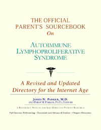 Since the late 1990s, physicians have seen a general increase in parent Internet usage rates. Parents frequently enter their children’s doctor’s offices with printed Web pages of home remedies in the guise of latest medical research. This scenario is so common that doctors often spend more time dispelling misleading information than guiding children through sound therapies. The Official Parent’s Sourcebook on Autoimmune Lymphoproliferative Syndrome has been created for parents who have decided to make education and research an integral part of the treatment process. The pages that follow will tell you where and how to look for information covering virtually all topics related to autoimmune lymphoproliferative syndrome, from the essentials to the most advanced areas of research. The title of this book includes the word “official.” This reflects the fact that the sourcebook draws from public, academic, government, and peer-reviewed research. Selected readings from various agencies are reproduced to give you some of the latest official information available to date on autoimmune lymphoproliferative syndrome. Given parents’ increasing sophistication in using the Internet, abundant references to reliable Internet-based resources are provided throughout this sourcebook. Where possible, guidance is provided on how to obtain free-of-charge, primary research results as well as more detailed information via the Internet. E-book and electronic versions of this sourcebook are fully interactive with each of the Internet sites mentioned (clicking on a hyperlink automatically opens your browser to the site indicated). Hard copy users of this sourcebook can type cited Web addresses directly into their browsers to obtain access to the corresponding sites. Since we are working with ICON Health Publications, hard copy Sourcebooks are frequently updated and printed on demand to ensure that the information provided is current. In addition to extensive references accessible via the Internet, every chapter presents a “Vocabulary Builder.” Many health guides offer glossaries of technical or uncommon terms in an appendix. In editing this sourcebook, we have decided to place a smaller glossary within each chapter that covers terms used in that chapter. Given the technical nature of some chapters, you may need to revisit many sections. Building one’s vocabulary of medical terms in such a gradual manner has been shown to improve the learning process. We must emphasize that no sourcebook on autoimmune lymphoproliferative syndrome should affirm that a specific diagnostic procedure or treatment discussed in a research study, patent, or doctoral dissertation is “correct” or your child’s best option. This sourcebook is no exception. Each child is unique. Deciding on appropriate options is always up to parents in consultation with their children’s physicians and healthcare providers. Organization This sourcebook is organized into three parts. Part I explores basic techniques to researching autoimmune lymphoproliferative syndrome (e.g. finding guidelines on diagnosis, treatments, and prognosis), followed by a number of topics, including information on how to get in touch with organizations, associations, or other parent networks dedicated to autoimmune lymphoproliferative syndrome. It also gives you sources of information that can help you find a doctor in your local area specializing in treating autoimmune lymphoproliferative syndrome. Collectively, the material presented in Part I is a complete primer on basic research topics for autoimmune lymphoproliferative syndrome. Part II moves on to advanced research dedicated to autoimmune lymphoproliferative syndrome. Part II is intended for those willing to invest many hours of hard work and study. It is here that we direct you to the latest scientific and applied research on autoimmune lymphoproliferative syndrome. When possible, contact names, links via the Internet, and summaries are provided. It is in Part II where the vocabulary process becomes important as authors publishing advanced research frequently use highly specialized language. In general, every attempt is made to recommend “free-to-use” options. Part III provides appendices of useful background reading covering autoimmune lymphoproliferative syndrome or related disorders. The appendices are dedicated to more pragmatic issues facing parents. Accessing materials via medical libraries may be the only option for some parents, so a guide is provided for finding local medical libraries which are open to the public. Part III, therefore, focuses on advice that goes beyond the biological and scientific issues facing children with autoimmune lymphoproliferative syndrome and their families. Scope While this sourcebook covers autoimmune lymphoproliferative syndrome, doctors, research publications, and specialists may refer to your child’s condition using a variety of terms. Therefore, you should understand that autoimmune lymphoproliferative syndrome is often considered a synonym or a condition closely related to the following: