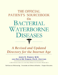 Since the late 1990s, physicians have seen a general increase in patient Internet usage rates. Patients frequently enter their doctor’s offices with printed Web pages of home remedies in the guise of latest medical research. This scenario is so common that doctors often spend more time dispelling misleading information than guiding patients through sound therapies. The Official Patient’s Sourcebook on Bacterial Waterborne Diseases has been created for patients who have decided to make education and research an integral part of the treatment process. The pages that follow will tell you where and how to look for information covering virtually all topics related to bacterial waterborne diseases, from the essentials to the most advanced areas of research. The title of this book includes the word “official.” This reflects the fact that the sourcebook draws from public, academic, government, and peer-reviewed research. Selected readings from various agencies are reproduced to give you some of the latest official information available to date on bacterial waterborne diseases. Given patients’ increasing sophistication in using the Internet, abundant references to reliable Internet-based resources are provided throughout this sourcebook. Where possible, guidance is provided on how to obtain free-of-charge, primary research results as well as more detailed information via the Internet. E-book and electronic versions of this sourcebook are fully interactive with each of the Internet sites mentioned (clicking on a hyperlink automatically opens your browser to the site indicated). Hard copy users of this sourcebook can type cited Web addresses directly into their browsers to obtain access to the corresponding sites. Since we are working with ICON Health Publications, hard copy Sourcebooks are frequently updated and printed on demand to ensure that the information provided is current. In addition to extensive references accessible via the Internet, every chapter presents a “Vocabulary Builder.” Many health guides offer glossaries of technical or uncommon terms in an appendix. In editing this sourcebook, we have decided to place a smaller glossary within each chapter that covers terms used in that chapter. Given the technical nature of some chapters, you may need to revisit many sections. Building one’s vocabulary of medical terms in such a gradual manner has been shown to improve the learning process. We must emphasize that no sourcebook on bacterial waterborne diseases should affirm that a specific diagnostic procedure or treatment discussed in a research study, patent, or doctoral dissertation is “correct” or your best option. This sourcebook is no exception. Each patient is unique. Deciding on appropriate options is always up to the patient in consultation with their physician and healthcare providers. Organization This sourcebook is organized into three parts. Part I explores basic techniques to researching bacterial waterborne diseases (e.g. finding guidelines on diagnosis, treatments, and prognosis), followed by a number of topics, including information on how to get in touch with organizations, associations, or other patient networks dedicated to bacterial waterborne diseases. It also gives you sources of information that can help you find a doctor in your local area specializing in treating bacterial waterborne diseases. Collectively, the material presented in Part I is a complete primer on basic research topics for patients with bacterial waterborne diseases. Part II moves on to advanced research dedicated to bacterial waterborne diseases. Part II is intended for those willing to invest many hours of hard work and study. It is here that we direct you to the latest scientific and applied research on bacterial waterborne diseases. When possible, contact names, links via the Internet, and summaries are provided. It is in Part II where the vocabulary process becomes important as authors publishing advanced research frequently use highly specialized language. In general, every attempt is made to recommend “free-to-use” options. Part III provides appendices of useful background reading for all patients with bacterial waterborne diseases or related disorders. The appendices are dedicated to more pragmatic issues faced by many patients with bacterial waterborne diseases. Accessing materials via medical libraries may be the only option for some readers, so a guide is provided for finding local medical libraries which are open to the public. Part III, therefore, focuses on advice that goes beyond the biological and scientific issues facing patients with bacterial waterborne diseases. Scope While this sourcebook covers bacterial waterborne diseases, your doctor, research publications, and specialists may refer to your condition using a variety of terms. Therefore, you should understand that bacterial waterborne diseases is often considered a synonym or a condition closely related to the following:
