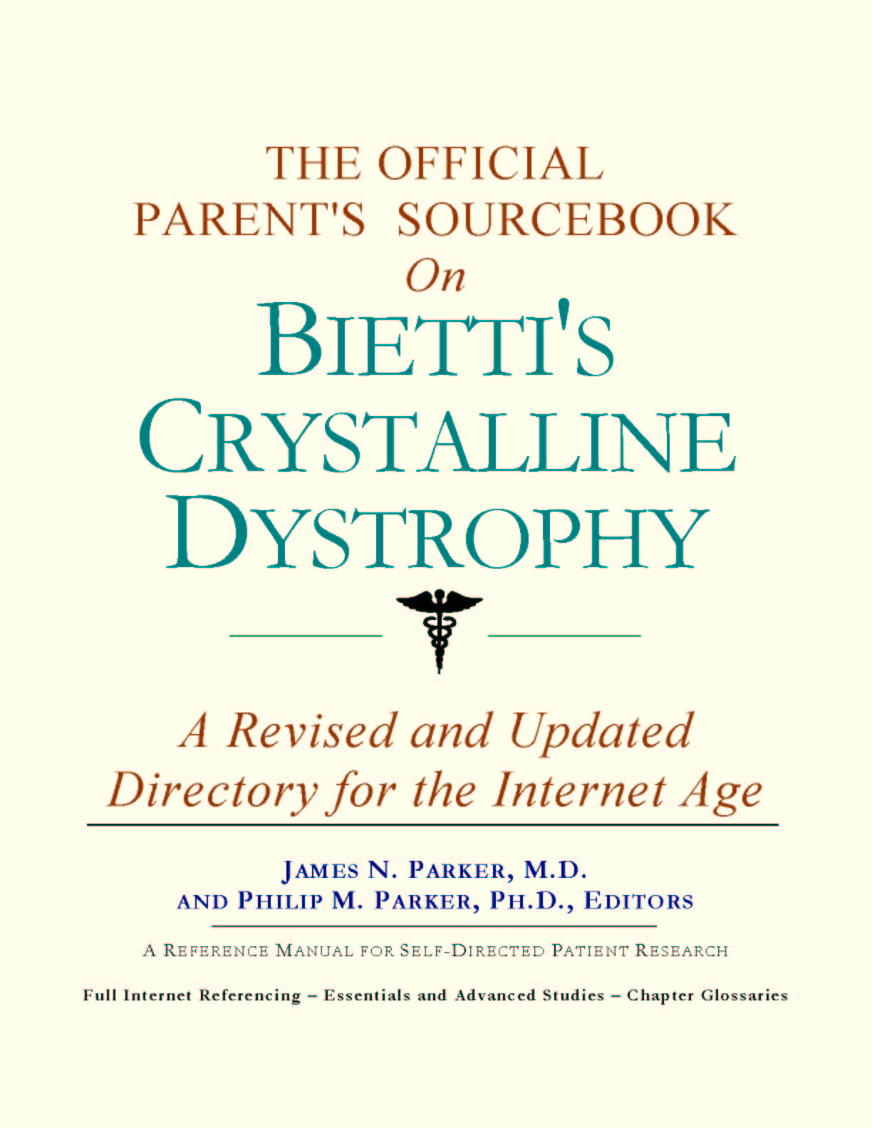 For the purposes of this sourcebook, we have attempted to be as inclusive as possible, looking for official information for all of the synonyms relevant to Bietti’s crystalline dystrophy. You may find it useful to refer to synonyms when accessing databases or interacting with healthcare professionals and medical librarians. Moving Forward Since the 1980s, the world has seen a proliferation of healthcare guides covering most illnesses. Some are written by parents, patients, or their family members. These generally take a layperson's approach to understanding and coping with an illness or disorder. They can be uplifting, encouraging, and highly supportive. Other guides are authored by physicians or other healthcare providers who have a more clinical outlook. Each of these two styles of guide has its purpose and can be quite useful. As editors, we have chosen a third route. We have chosen to expose you to as many sources of official and peer-reviewed information as practical, for the purpose of educating you about basic and advanced knowledge as recognized by medical science today. You can think of this sourcebook as your personal Internet age reference librarian. Why “Internet age”? When their child has been diagnosed with Bietti’s crystalline dystrophy, parents will often log on to the Internet, type words into a search engine, and receive several Web site listings which are mostly irrelevant or redundant. Parents are left to wonder where the relevant information is, and how to obtain it. Since only the smallest fraction of information dealing with Bietti’s crystalline dystrophy is even indexed in search engines, a non-systematic approach often leads to frustration and disappointment. With this sourcebook, we hope to direct you to the information you need that you would not likely find using popular Web directories. Beyond Web listings, in many cases we will reproduce brief summaries or abstracts of available reference materials. These abstracts often contain distilled information on topics of discussion. While we focus on the more scientific aspects of Bietti’s crystalline dystrophy, there is, of course, the emotional side to consider. Later in the sourcebook, we provide a chapter dedicated to helping you find parent groups and associations that can provide additional support beyond research produced by medical science. We hope that the choices we have made give you and your child the most options in moving forward. In this way, we wish you the best in your efforts to incorporate this educational approach into your child’s treatment plan. |
