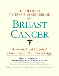 Since the late 1990s, physicians have seen a general increase in patient Internet usage rates. Patients frequently enter their doctor’s offices with printed Web pages of home remedies in the guise of latest medical research. This scenario is so common that doctors often spend more time dispelling misleading information than guiding patients through sound therapies. The Official Patient’s Sourcebook on Breast Cancer has been created for patients who have decided to make education and research an integral part of the treatment process. The pages that follow will tell you where and how to look for information covering virtually all topics related to breast cancer, from the essentials to the most advanced areas of research. The title of this book includes the word “official.” This reflects the fact that the sourcebook draws from public, academic, government, and peer-reviewed research. Selected readings from various agencies are reproduced to give you some of the latest official information available to date on breast cancer. Given patients’ increasing sophistication in using the Internet, abundant references to reliable Internet-based resources are provided throughout this sourcebook. Where possible, guidance is provided on how to obtain free-of-charge, primary research results as well as more detailed information via the Internet. E-book and electronic versions of this sourcebook are fully interactive with each of the Internet sites mentioned (clicking on a hyperlink automatically opens your browser to the site indicated). Hard copy users of this sourcebook can type cited Web addresses directly into their browsers to obtain access to the corresponding sites. Since we are working with ICON Health Publications, hard copy Sourcebooks are frequently updated and printed on demand to ensure that the information provided is current. In addition to extensive references accessible via the Internet, every chapter presents a “Vocabulary Builder.” Many health guides offer glossaries of technical or uncommon terms in an appendix. In editing this sourcebook, we have decided to place a smaller glossary within each chapter that covers terms used in that chapter. Given the technical nature of some chapters, you may need to revisit many sections. Building one’s vocabulary of medical terms in such a gradual manner has been shown to improve the learning process. We must emphasize that no sourcebook on breast cancer should affirm that a specific diagnostic procedure or treatment discussed in a research study, patent, or doctoral dissertation is “correct” or your best option. This sourcebook is no exception. Each patient is unique. Deciding on appropriate options is always up to the patient in consultation with their physician and healthcare providers. Organization This sourcebook is organized into three parts. Part I explores basic techniques to researching breast cancer (e.g. finding guidelines on diagnosis, treatments, and prognosis), followed by a number of topics, including information on how to get in touch with organizations, associations, or other patient networks dedicated to breast cancer. It also gives you sources of information that can help you find a doctor in your local area specializing in treating breast cancer. Collectively, the material presented in Part I is a complete primer on basic research topics for patients with breast cancer. Part II moves on to advanced research dedicated to breast cancer. Part II is intended for those willing to invest many hours of hard work and study. It is here that we direct you to the latest scientific and applied research on breast cancer. When possible, contact names, links via the Internet, and summaries are provided. It is in Part II where the vocabulary process becomes important as authors publishing advanced research frequently use highly specialized language. In general, every attempt is made to recommend “free-to-use” options. Part III provides appendices of useful background reading for all patients with breast cancer or related disorders. The appendices are dedicated to more pragmatic issues faced by many patients with breast cancer. Accessing materials via medical libraries may be the only option for some readers, so a guide is provided for finding local medical libraries which are open to the public. Part III, therefore, focuses on advice that goes beyond the biological and scientific issues facing patients with breast cancer. Scope While this sourcebook covers breast cancer, your doctor, research publications, and specialists may refer to your condition using a variety of terms. Therefore, you should understand that breast cancer is often considered a synonym or a condition closely related to the following: