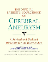 Since the late 1990s, physicians have seen a general increase in patient Internet usage rates. Patients frequently enter their doctor’s offices with printed Web pages of home remedies in the guise of latest medical research. This scenario is so common that doctors often spend more time dispelling misleading information than guiding patients through sound therapies. The Official Patient’s Sourcebook on Cerebral Aneurysm has been created for patients who have decided to make education and research an integral part of the treatment process. The pages that follow will tell you where and how to look for information covering virtually all topics related to cerebral aneurysm, from the essentials to the most advanced areas of research. The title of this book includes the word “official.” This reflects the fact that the sourcebook draws from public, academic, government, and peer-reviewed research. Selected readings from various agencies are reproduced to give you some of the latest official information available to date on cerebral aneurysm. Given patients’ increasing sophistication in using the Internet, abundant references to reliable Internet-based resources are provided throughout this sourcebook. Where possible, guidance is provided on how to obtain free-of-charge, primary research results as well as more detailed information via the Internet. E-book and electronic versions of this sourcebook are fully interactive with each of the Internet sites mentioned (clicking on a hyperlink automatically opens your browser to the site indicated). Hard copy users of this sourcebook can type cited Web addresses directly into their browsers to obtain access to the corresponding sites. Since we are working with ICON Health Publications, hard copy Sourcebooks are frequently updated and printed on demand to ensure that the information provided is current. In addition to extensive references accessible via the Internet, every chapter presents a “Vocabulary Builder.” Many health guides offer glossaries of technical or uncommon terms in an appendix. In editing this sourcebook, we have decided to place a smaller glossary within each chapter that covers terms used in that chapter. Given the technical nature of some chapters, you may need to revisit many sections. Building one’s vocabulary of medical terms in such a gradual manner has been shown to improve the learning process. We must emphasize that no sourcebook on cerebral aneurysm should affirm that a specific diagnostic procedure or treatment discussed in a research study, patent, or doctoral dissertation is “correct” or your best option. This sourcebook is no exception. Each patient is unique. Deciding on appropriate options is always up to the patient in consultation with their physician and healthcare providers. Organization This sourcebook is organized into three parts. Part I explores basic techniques to researching cerebral aneurysm (e.g. finding guidelines on diagnosis, treatments, and prognosis), followed by a number of topics, including information on how to get in touch with organizations, associations, or other patient networks dedicated to cerebral aneurysm. It also gives you sources of information that can help you find a doctor in your local area specializing in treating cerebral aneurysm. Collectively, the material presented in Part I is a complete primer on basic research topics for patients with cerebral aneurysm. Part II moves on to advanced research dedicated to cerebral aneurysm. Part II is intended for those willing to invest many hours of hard work and study. It is here that we direct you to the latest scientific and applied research on cerebral aneurysm. When possible, contact names, links via the Internet, and summaries are provided. It is in Part II where the vocabulary process becomes important as authors publishing advanced research frequently use highly specialized language. In general, every attempt is made to recommend “free-to-use” options. Part III provides appendices of useful background reading for all patients with cerebral aneurysm or related disorders. The appendices are dedicated to more pragmatic issues faced by many patients with cerebral aneurysm. Accessing materials via medical libraries may be the only option for some readers, so a guide is provided for finding local medical libraries which are open to the public. Part III, therefore, focuses on advice that goes beyond the biological and scientific issues facing patients with cerebral aneurysm. Scope While this sourcebook covers cerebral aneurysm, your doctor, research publications, and specialists may refer to your condition using a variety of terms. Therefore, you should understand that cerebral aneurysm is often considered a synonym or a condition closely related to the following: