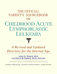 Since the late 1990s, physicians have seen a general increase in parent Internet usage rates. Parents frequently enter their children’s doctor’s offices with printed Web pages of home remedies in the guise of latest medical research. This scenario is so common that doctors often spend more time dispelling misleading information than guiding children through sound therapies. The Official Parent’s Sourcebook on Childhood Acute Lymphoblastic Leukemia has been created for parents who have decided to make education and research an integral part of the treatment process. The pages that follow will tell you where and how to look for information covering virtually all topics related to childhood acute lymphoblastic leukemia, from the essentials to the most advanced areas of research. The title of this book includes the word “official.” This reflects the fact that the sourcebook draws from public, academic, government, and peer-reviewed research. Selected readings from various agencies are reproduced to give you some of the latest official information available to date on childhood acute lymphoblastic leukemia. Given parents’ increasing sophistication in using the Internet, abundant references to reliable Internet-based resources are provided throughout this sourcebook. Where possible, guidance is provided on how to obtain free-of-charge, primary research results as well as more detailed information via the Internet. E-book and electronic versions of this sourcebook are fully interactive with each of the Internet sites mentioned (clicking on a hyperlink automatically opens your browser to the site indicated). Hard copy users of this sourcebook can type cited Web addresses directly into their browsers to obtain access to the corresponding sites. Since we are working with ICON Health Publications, hard copy Sourcebooks are frequently updated and printed on demand to ensure that the information provided is current. In addition to extensive references accessible via the Internet, every chapter presents a “Vocabulary Builder.” Many health guides offer glossaries of technical or uncommon terms in an appendix. In editing this sourcebook, we have decided to place a smaller glossary within each chapter that covers terms used in that chapter. Given the technical nature of some chapters, you may need to revisit many sections. Building one’s vocabulary of medical terms in such a gradual manner has been shown to improve the learning process. We must emphasize that no sourcebook on childhood acute lymphoblastic leukemia should affirm that a specific diagnostic procedure or treatment discussed in a research study, patent, or doctoral dissertation is “correct” or your child’s best option. This sourcebook is no exception. Each child is unique. Deciding on appropriate options is always up to parents in consultation with their children’s physicians and healthcare providers. Organization This sourcebook is organized into three parts. Part I explores basic techniques to researching childhood acute lymphoblastic leukemia (e.g. finding guidelines on diagnosis, treatments, and prognosis), followed by a number of topics, including information on how to get in touch with organizations, associations, or other parent networks dedicated to childhood acute lymphoblastic leukemia. It also gives you sources of information that can help you find a doctor in your local area specializing in treating childhood acute lymphoblastic leukemia. Collectively, the material presented in Part I is a complete primer on basic research topics for childhood acute lymphoblastic leukemia. Part II moves on to advanced research dedicated to childhood acute lymphoblastic leukemia. Part II is intended for those willing to invest many hours of hard work and study. It is here that we direct you to the latest scientific and applied research on childhood acute lymphoblastic leukemia. When possible, contact names, links via the Internet, and summaries are provided. It is in Part II where the vocabulary process becomes important as authors publishing advanced research frequently use highly specialized language. In general, every attempt is made to recommend “free-to-use” options. Part III provides appendices of useful background reading covering childhood acute lymphoblastic leukemia or related disorders. The appendices are dedicated to more pragmatic issues facing parents. Accessing materials via medical libraries may be the only option for some parents, so a guide is provided for finding local medical libraries which are open to the public. Part III, therefore, focuses on advice that goes beyond the biological and scientific issues facing children with childhood acute lymphoblastic leukemia and their families. Scope While this sourcebook covers childhood acute lymphoblastic leukemia, doctors, research publications, and specialists may refer to your child’s condition using a variety of terms. Therefore, you should understand that childhood acute lymphoblastic leukemia is often considered a synonym or a condition closely related to the following: