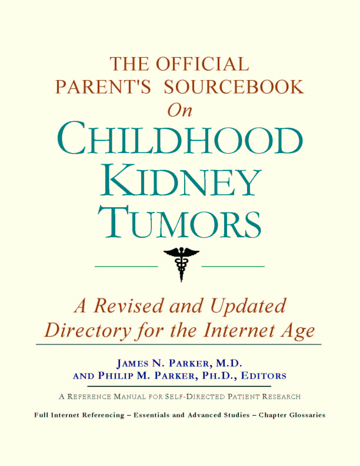 For the purposes of this sourcebook, we have attempted to be as inclusive as possible, looking for official information for all of the synonyms relevant to childhood kidney tumors. You may find it useful to refer to synonyms when accessing databases or interacting with healthcare professionals and medical librarians. Moving Forward Since the 1980s, the world has seen a proliferation of healthcare guides covering most illnesses. Some are written by parents, patients, or their family members. These generally take a layperson’s approach to understanding and coping with an illness or disorder. They can be uplifting, encouraging, and highly supportive. Other guides are authored by physicians or other healthcare providers who have a more clinical outlook. Each of these two styles of guide has its purpose and can be quite useful. As editors, we have chosen a third route. We have chosen to expose you to as many sources of official and peer-reviewed information as practical, for the purpose of educating you about basic and advanced knowledge as recognized by medical science today. You can think of this sourcebook as your personal Internet age reference librarian. Why “Internet age”? When their child has been diagnosed with childhood kidney tumors, parents will often log on to the Internet, type words into a search engine, and receive several Web site listings which are mostly irrelevant or redundant. Parents are left to wonder where the relevant information is, and how to obtain it. Since only the smallest fraction of information dealing with childhood kidney tumors is even indexed in search engines, a non-systematic approach often leads to frustration and disappointment. With this sourcebook, we hope to direct you to the information you need that you would not likely find using popular Web directories. Beyond Web listings, in many cases we will reproduce brief summaries or abstracts of available reference materials. These abstracts often contain distilled information on topics of discussion. While we focus on the more scientific aspects of childhood kidney tumors, there is, of course, the emotional side to consider. Later in the sourcebook, we provide a chapter dedicated to helping you find parent groups and associations that can provide additional support beyond research produced by medical science. We hope that the choices we have made give you and your child the most options in moving forward. In this way, we wish you the best in your efforts to incorporate this educational approach into your child’s treatment plan. |