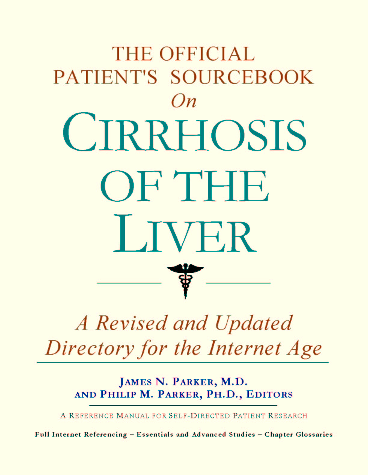 Since the late 1990s, physicians have seen a general increase in patient Internet usage rates. Patients frequently enter their doctor's offices with printed Web pages of home remedies in the guise of latest medical research. This scenario is so common that doctors often spend more time dispelling misleading information than guiding patients through sound therapies. The Official Patient’s Sourcebook on Cirrhosis of the Liver has been created for patients who have decided to make education and research an integral part of the treatment process. The pages that follow will tell you where and how to look for information covering virtually all topics related to cirrhosis of the liver, from the essentials to the most advanced areas of research. The title of this book includes the word “official.” This reflects the fact that the sourcebook draws from public, academic, government, and peer-reviewed research. Selected readings from various agencies are reproduced to give you some of the latest official information available to date on cirrhosis of the liver. Given patients’ increasing sophistication in using the Internet, abundant references to reliable Internet-based resources are provided throughout this sourcebook. Where possible, guidance is provided on how to obtain free-of-charge, primary research results as well as more detailed information via the Internet. E-book and electronic versions of this sourcebook are fully interactive with each of the Internet sites mentioned (clicking on a hyperlink automatically opens your browser to the site indicated). Hard copy users of this sourcebook can type cited Web addresses directly into their browsers to obtain access to the corresponding sites. Since we are working with ICON Health Publications, hard copy Sourcebooks are frequently updated and printed on demand to ensure that the information provided is current. In addition to extensive references accessible via the Internet, every chapter presents a “Vocabulary Builder.” Many health guides offer glossaries of technical or uncommon terms in an appendix. In editing this sourcebook, we have decided to place a smaller glossary within each chapter that covers terms used in that chapter. Given the technical nature of some chapters, you may need to revisit many sections. Building one’s vocabulary of medical terms in such a gradual manner has been shown to improve the learning process. We must emphasize that no sourcebook on cirrhosis of the liver should affirm that a specific diagnostic procedure or treatment discussed in a research study, patent, or doctoral dissertation is “correct” or your best option. This sourcebook is no exception. Each patient is unique. Deciding on appropriate options is always up to the patient in consultation with their physician and healthcare providers. Organization This sourcebook is organized into three parts. Part I explores basic techniques to researching cirrhosis of the liver (e.g. finding guidelines on diagnosis, treatments, and prognosis), followed by a number of topics, including information on how to get in touch with organizations, associations, or other patient networks dedicated to cirrhosis of the liver. It also gives you sources of information that can help you find a doctor in your local area specializing in treating cirrhosis of the liver. Collectively, the material presented in Part I is a complete primer on basic research topics for patients with cirrhosis of the liver. Part II moves on to advanced research dedicated to cirrhosis of the liver. Part II is intended for those willing to invest many hours of hard work and study. It is here that we direct you to the latest scientific and applied research on cirrhosis of the liver. When possible, contact names, links via the Internet, and summaries are provided. It is in Part II where the vocabulary process becomes important as authors publishing advanced research frequently use highly specialized language. In general, every attempt is made to recommend “free-to-use” options. Part III provides appendices of useful background reading for all patients with cirrhosis of the liver or related disorders. The appendices are dedicated to more pragmatic issues faced by many patients with cirrhosis of the liver. Accessing materials via medical libraries may be the only option for some readers, so a guide is provided for finding local medical libraries which are open to the public. Part III, therefore, focuses on advice that goes beyond the biological and scientific issues facing patients with cirrhosis of the liver. Scope While this sourcebook covers cirrhosis of the liver, your doctor, research publications, and specialists may refer to your condition using a variety of terms. Therefore, you should understand that cirrhosis of the liver is often considered a synonym or a condition closely related to the following: