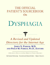 Since the late 1990s, physicians have seen a general increase in patient Internet usage rates. Patients frequently enter their doctor’s offices with printed Web pages of home remedies in the guise of latest medical research. This scenario is so common that doctors often spend more time dispelling misleading information than guiding patients through sound therapies. The Official Patient’s Sourcebook on Dysphagia has been created for patients who have decided to make education and research an integral part of the treatment process. The pages that follow will tell you where and how to look for information covering virtually all topics related to dysphagia, from the essentials to the most advanced areas of research. The title of this book includes the word “official.” This reflects the fact that the sourcebook draws from public, academic, government, and peer-reviewed research. Selected readings from various agencies are reproduced to give you some of the latest official information available to date on dysphagia. Given patients’ increasing sophistication in using the Internet, abundant references to reliable Internet-based resources are provided throughout this sourcebook. Where possible, guidance is provided on how to obtain free-of-charge, primary research results as well as more detailed information via the Internet. E-book and electronic versions of this sourcebook are fully interactive with each of the Internet sites mentioned (clicking on a hyperlink automatically opens your browser to the site indicated). Hard copy users of this sourcebook can type cited Web addresses directly into their browsers to obtain access to the corresponding sites. Since we are working with ICON Health Publications, hard copy Sourcebooks are frequently updated and printed on demand to ensure that the information provided is current. In addition to extensive references accessible via the Internet, every chapter presents a “Vocabulary Builder.” Many health guides offer glossaries of technical or uncommon terms in an appendix. In editing this sourcebook, we have decided to place a smaller glossary within each chapter that covers terms used in that chapter. Given the technical nature of some chapters, you may need to revisit many sections. Building one’s vocabulary of medical terms in such a gradual manner has been shown to improve the learning process. We must emphasize that no sourcebook on dysphagia should affirm that a specific diagnostic procedure or treatment discussed in a research study, patent, or doctoral dissertation is “correct” or your best option. This sourcebook is no exception. Each patient is unique. Deciding on appropriate options is always up to the patient in consultation with their physician and healthcare providers. Organization This sourcebook is organized into three parts. Part I explores basic techniques to researching dysphagia (e.g. finding guidelines on diagnosis, treatments, and prognosis), followed by a number of topics, including information on how to get in touch with organizations, associations, or other patient networks dedicated to dysphagia. It also gives you sources of information that can help you find a doctor in your local area specializing in treating dysphagia. Collectively, the material presented in Part I is a complete primer on basic research topics for patients with dysphagia. Part II moves on to advanced research dedicated to dysphagia. Part II is intended for those willing to invest many hours of hard work and study. It is here that we direct you to the latest scientific and applied research on dysphagia. When possible, contact names, links via the Internet, and summaries are provided. It is in Part II where the vocabulary process becomes important as authors publishing advanced research frequently use highly specialized language. In general, every attempt is made to recommend “free-to-use” options. Part III provides appendices of useful background reading for all patients with dysphagia or related disorders. The appendices are dedicated to more pragmatic issues faced by many patients with dysphagia. Accessing materials via medical libraries may be the only option for some readers, so a guide is provided for finding local medical libraries which are open to the public. Part III, therefore, focuses on advice that goes beyond the biological and scientific issues facing patients with dysphagia. Scope While this sourcebook covers dysphagia, your doctor, research publications, and specialists may refer to your condition using a variety of terms. Therefore, you should understand that dysphagia is often considered a synonym or a condition closely related to the following: