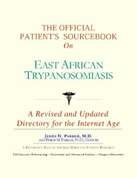 Since the late 1990s, physicians have seen a general increase in patient Internet usage rates. Patients frequently enter their doctor’s offices with printed Web pages of home remedies in the guise of latest medical research. This scenario is so common that doctors often spend more time dispelling misleading information than guiding patients through sound therapies. The Official Patient’s Sourcebook on East African Trypanosomiasis has been created for patients who have decided to make education and research an integral part of the treatment process. The pages that follow will tell you where and how to look for information covering virtually all topics related to East African trypanosomiasis, from the essentials to the most advanced areas of research. The title of this book includes the word “official.” This reflects the fact that the sourcebook draws from public, academic, government, and peer-reviewed research. Selected readings from various agencies are reproduced to give you some of the latest official information available to date on East African trypanosomiasis. Given patients’ increasing sophistication in using the Internet, abundant references to reliable Internet-based resources are provided throughout this sourcebook. Where possible, guidance is provided on how to obtain free-of-charge, primary research results as well as more detailed information via the Internet. E-book and electronic versions of this sourcebook are fully interactive with each of the Internet sites mentioned (clicking on a hyperlink automatically opens your browser to the site indicated). Hard copy users of this sourcebook can type cited Web addresses directly into their browsers to obtain access to the corresponding sites. Since we are working with ICON Health Publications, hard copy Sourcebooks are frequently updated and printed on demand to ensure that the information provided is current. In addition to extensive references accessible via the Internet, every chapter presents a “Vocabulary Builder.” Many health guides offer glossaries of technical or uncommon terms in an appendix. In editing this sourcebook, we have decided to place a smaller glossary within each chapter that covers terms used in that chapter. Given the technical nature of some chapters, you may need to revisit many sections. Building one’s vocabulary of medical terms in such a gradual manner has been shown to improve the learning process. We must emphasize that no sourcebook on East African trypanosomiasis should affirm that a specific diagnostic procedure or treatment discussed in a research study, patent, or doctoral dissertation is “correct” or your best option. This sourcebook is no exception. Each patient is unique. Deciding on appropriate options is always up to the patient in consultation with their physician and healthcare providers. Organization This sourcebook is organized into three parts. Part I explores basic techniques to researching East African trypanosomiasis (e.g. finding guidelines on diagnosis, treatments, and prognosis), followed by a number of topics, including information on how to get in touch with organizations, associations, or other patient networks dedicated to East African trypanosomiasis. It also gives you sources of information that can help you find a doctor in your local area specializing in treating East African trypanosomiasis. Collectively, the material presented in Part I is a complete primer on basic research topics for patients with East African trypanosomiasis. Part II moves on to advanced research dedicated to East African trypanosomiasis. Part II is intended for those willing to invest many hours of hard work and study. It is here that we direct you to the latest scientific and applied research on East African trypanosomiasis. When possible, contact names, links via the Internet, and summaries are provided. It is in Part II where the vocabulary process becomes important as authors publishing advanced research frequently use highly specialized language. In general, every attempt is made to recommend “free-to-use” options. Part III provides appendices of useful background reading for all patients with East African trypanosomiasis or related disorders. The appendices are dedicated to more pragmatic issues faced by many patients with East African trypanosomiasis. Accessing materials via medical libraries may be the only option for some readers, so a guide is provided for finding local medical libraries which are open to the public. Part III, therefore, focuses on advice that goes beyond the biological and scientific issues facing patients with East African trypanosomiasis. Scope While this sourcebook covers East African trypanosomiasis, your doctor, research publications, and specialists may refer to your condition using a variety of terms. Therefore, you should understand that East African trypanosomiasis is often considered a synonym or a condition closely related to the following: