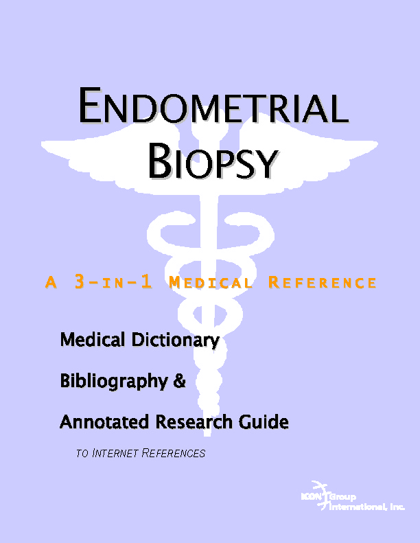 This is a 3-in-1 reference book. It gives a complete medical dictionary covering hundreds of terms and expressions relating to endometrial biopsy. It also gives extensive lists of bibliographic citations. Finally, it provides information to users on how to update their knowledge using various Internet resources. The book is designed for physicians, medical students preparing for Board examinations, medical researchers, and patients who want to become familiar with research dedicated to endometrial biopsy. If your time is valuable, this book is for you. First, you will not waste time searching the Internet while missing a lot of relevant information. Second, the book also saves you time indexing and defining entries. Finally, you will not waste time and money printing hundreds of web pages. |
