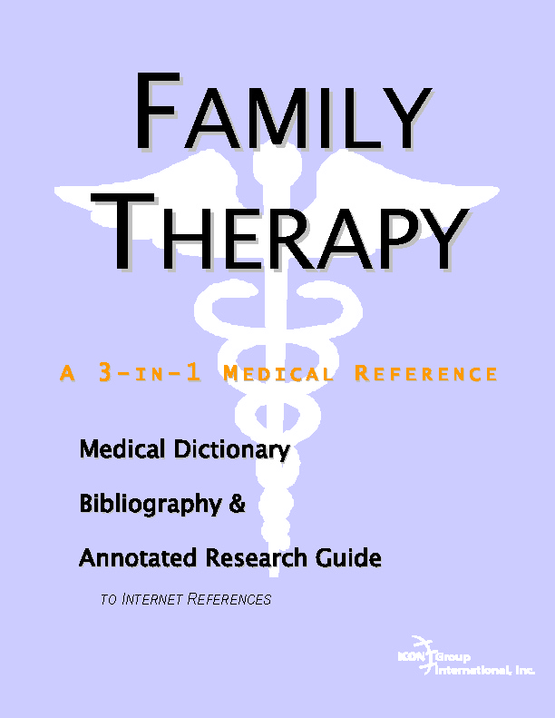 Forward Chapter 1. Studies on Family Therapy Overview The Combined Health Information Database Federally Funded Research on Family Therapy The National Library of Medicine: PubMed Chapter 2. Alternative Medicine and Family Therapy Overview National Center for Complementary and Alternative Medicine Additional Web Resources General References Chapter 3. Dissertations on Family Therapy Overview Dissertations on Family Therapy Keeping Current Chapter 4. Books on Family Therapy Overview Book Summaries: Federal Agencies Book Summaries: Online Booksellers Chapters on Family Therapy Directories Chapter 5. Periodicals and News on Family Therapy Overview News Services and Press Releases Academic Periodicals covering Family Therapy Appendix A. Physician Resources Overview NIH Guidelines NIH Databases Other Commercial Databases Appendix B. Patient Resources Overview Patient Guideline Sources Finding Associations Appendix C. Finding Medical Libraries Overview Preparation Finding a Local Medical Library Medical Libraries in the U.S. and Canada ONLINE GLOSSARIES Online Dictionary Directories FAMILY THERAPY DICTIONARY INDEX |