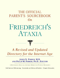 Since the late 1990s, physicians have seen a general increase in parent Internet usage rates. Parents frequently enter their children’s doctor’s offices with printed Web pages of home remedies in the guise of latest medical research. This scenario is so common that doctors often spend more time dispelling misleading information than guiding children through sound therapies. The Official Parent’s Sourcebook on Friedreich’s Ataxia has been created for parents who have decided to make education and research an integral part of the treatment process. The pages that follow will tell you where and how to look for information covering virtually all topics related to Friedreich’s ataxia, from the essentials to the most advanced areas of research. The title of this book includes the word “official.” This reflects the fact that the sourcebook draws from public, academic, government, and peer-reviewed research. Selected readings from various agencies are reproduced to give you some of the latest official information available to date on Friedreich’s ataxia. Given parents’ increasing sophistication in using the Internet, abundant references to reliable Internet-based resources are provided throughout this sourcebook. Where possible, guidance is provided on how to obtain free-of-charge, primary research results as well as more detailed information via the Internet. E-book and electronic versions of this sourcebook are fully interactive with each of the Internet sites mentioned (clicking on a hyperlink automatically opens your browser to the site indicated). Hard copy users of this sourcebook can type cited Web addresses directly into their browsers to obtain access to the corresponding sites. Since we are working with ICON Health Publications, hard copy Sourcebooks are frequently updated and printed on demand to ensure that the information provided is current. In addition to extensive references accessible via the Internet, every chapter presents a “Vocabulary Builder.” Many health guides offer glossaries of technical or uncommon terms in an appendix. In editing this sourcebook, we have decided to place a smaller glossary within each chapter that covers terms used in that chapter. Given the technical nature of some chapters, you may need to revisit many sections. Building one’s vocabulary of medical terms in such a gradual manner has been shown to improve the learning process. We must emphasize that no sourcebook on Friedreich’s ataxia should affirm that a specific diagnostic procedure or treatment discussed in a research study, patent, or doctoral dissertation is “correct” or your child’s best option. This sourcebook is no exception. Each child is unique. Deciding on appropriate options is always up to parents in consultation with their children’s physicians and healthcare providers. Organization This sourcebook is organized into three parts. Part I explores basic techniques to researching Friedreich’s ataxia (e.g. finding guidelines on diagnosis, treatments, and prognosis), followed by a number of topics, including information on how to get in touch with organizations, associations, or other parent networks dedicated to Friedreich’s ataxia. It also gives you sources of information that can help you find a doctor in your local area specializing in treating Friedreich’s ataxia. Collectively, the material presented in Part I is a complete primer on basic research topics for Friedreich’s ataxia. Part II moves on to advanced research dedicated to Friedreich’s ataxia. Part II is intended for those willing to invest many hours of hard work and study. It is here that we direct you to the latest scientific and applied research on Friedreich’s ataxia. When possible, contact names, links via the Internet, and summaries are provided. It is in Part II where the vocabulary process becomes important as authors publishing advanced research frequently use highly specialized language. In general, every attempt is made to recommend “free-to-use” options. Part III provides appendices of useful background reading covering Friedreich’s ataxia or related disorders. The appendices are dedicated to more pragmatic issues facing parents. Accessing materials via medical libraries may be the only option for some parents, so a guide is provided for finding local medical libraries which are open to the public. Part III, therefore, focuses on advice that goes beyond the biological and scientific issues facing children with Friedreich’s ataxia and their families. Scope While this sourcebook covers Friedreich’s ataxia, doctors, research publications, and specialists may refer to your child’s condition using a variety of terms. Therefore, you should understand that Friedreich’s ataxia is often considered a synonym or a condition closely related to the following: