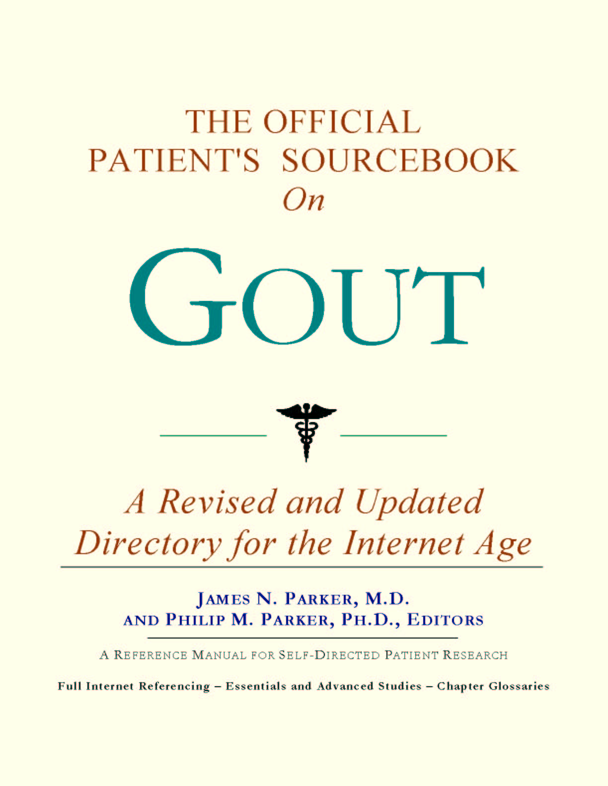 For the purposes of this sourcebook, we have attempted to be as inclusive as possible, looking for official information for all of the synonyms relevant to gout. You may find it useful to refer to synonyms when accessing databases or interacting with healthcare professionals and medical librarians. Moving Forward Since the 1980s, the world has seen a proliferation of healthcare guides covering most illnesses. Some are written by patients or their family members. These generally take a layperson's approach to understanding and coping with an illness or disorder. They can be uplifting, encouraging, and highly supportive. Other guides are authored by physicians or other healthcare providers who have a more clinical outlook. Each of these two styles of guide has its purpose and can be quite useful. As editors, we have chosen a third route. We have chosen to expose you to as many sources of official and peer-reviewed information as practical, for the purpose of educating you about basic and advanced knowledge as recognized by medical science today. You can think of this sourcebook as your personal Internet age reference librarian. Why “Internet age”? All too often, patients diagnosed with gout will log on to the Internet, type words into a search engine, and receive several Web site listings which are mostly irrelevant or redundant. These patients are left to wonder where the relevant information is, and how to obtain it. Since only the smallest fraction of information dealing with gout is even indexed in search engines, a non-systematic approach often leads to frustration and disappointment. With this sourcebook, we hope to direct you to the information you need that you would not likely find using popular Web directories. Beyond Web listings, in many cases we will reproduce brief summaries or abstracts of available reference materials. These abstracts often contain distilled information on topics of discussion. While we focus on the more scientific aspects of gout, there is, of course, the emotional side to consider. Later in the sourcebook, we provide a chapter dedicated to helping you find peer groups and associations that can provide additional support beyond research produced by medical science. We hope that the choices we have made give you the most options available in moving forward. In this way, we wish you the best in your efforts to incorporate this educational approach into your treatment plan. |