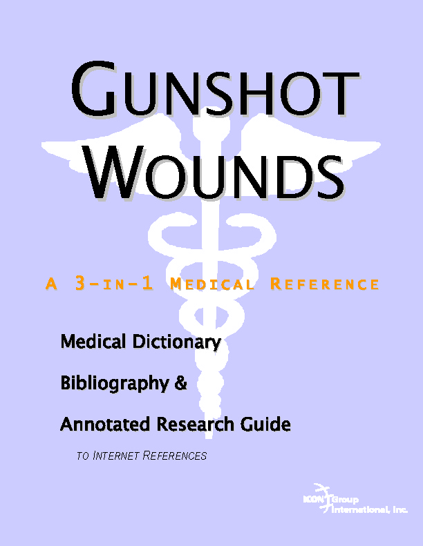 Forward Chapter 1. Studies on Gunshot Wounds Overview The Combined Health Information Database Federally Funded Research on Gunshot Wounds E-Journals: PubMed Central The National Library of Medicine: PubMed Chapter 2. Nutrition and Gunshot Wounds Overview Finding Nutrition Studies on Gunshot Wounds Federal Resources on Nutrition Additional Web Resources Chapter 3. Alternative Medicine and Gunshot Wounds Overview National Center for Complementary and Alternative Medicine Additional Web Resources General References Chapter 4. Books on Gunshot Wounds Overview Chapters on Gunshot Wounds Chapter 5. Periodicals and News on Gunshot Wounds Overview News Services and Press Releases Academic Periodicals covering Gunshot Wounds Appendix A. Physician Resources Overview NIH Guidelines NIH Databases Other Commercial Databases Appendix B. Patient Resources Overview Patient Guideline Sources Finding Associations Appendix C. Finding Medical Libraries Overview Preparation Finding a Local Medical Library Medical Libraries in the U.S. and Canada ONLINE GLOSSARIES Online Dictionary Directories GUNSHOT WOUNDS DICTIONARY INDEX |