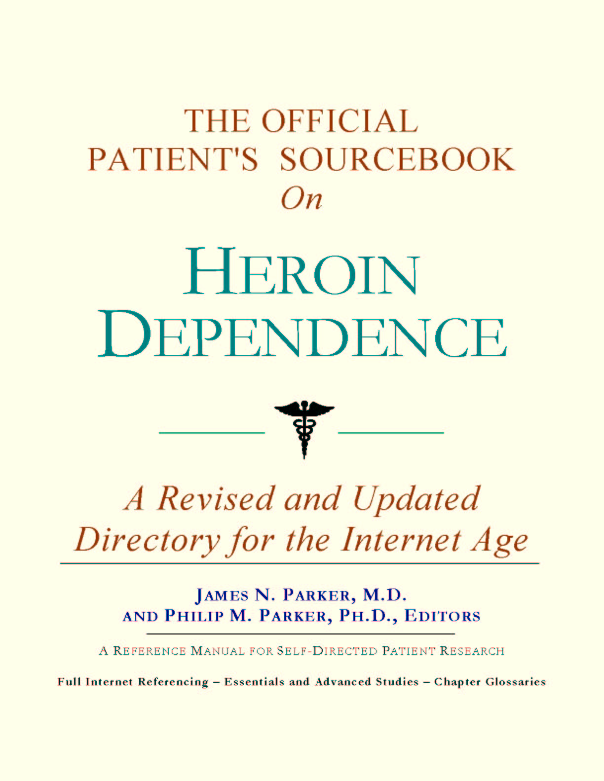 For the purposes of this sourcebook, we have attempted to be as inclusive as possible, looking for official information for all of the synonyms relevant to heroin dependence. You may find it useful to refer to synonyms when accessing databases or interacting with healthcare professionals and medical librarians. Moving Forward Since the 1980s, the world has seen a proliferation of healthcare guides covering most illnesses. Some are written by patients or their family members. These generally take a layperson's approach to understanding and coping with an illness or disorder. They can be uplifting, encouraging, and highly supportive. Other guides are authored by physicians or other healthcare providers who have a more clinical outlook. Each of these two styles of guide has its purpose and can be quite useful. As editors, we have chosen a third route. We have chosen to expose you to as many sources of official and peer-reviewed information as practical, for the purpose of educating you about basic and advanced knowledge as recognized by medical science today. You can think of this sourcebook as your personal Internet age reference librarian. Why “Internet age”? All too often, patients diagnosed with heroin dependence will log on to the Internet, type words into a search engine, and receive several Web site listings which are mostly irrelevant or redundant. These patients are left to wonder where the relevant information is, and how to obtain it. Since only the smallest fraction of information dealing with heroin dependence is even indexed in search engines, a non-systematic approach often leads to frustration and disappointment. With this sourcebook, we hope to direct you to the information you need that you would not likely find using popular Web directories. Beyond Web listings, in many cases we will reproduce brief summaries or abstracts of available reference materials. These abstracts often contain distilled information on topics of discussion. While we focus on the more scientific aspects of heroin dependence, there is, of course, the emotional side to consider. Later in the sourcebook, we provide a chapter dedicated to helping you find peer groups and associations that can provide additional support beyond research produced by medical science. We hope that the choices we have made give you the most options available in moving forward. In this way, we wish you the best in your efforts to incorporate this educational approach into your treatment plan. |