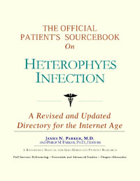 Since the late 1990s, physicians have seen a general increase in patient Internet usage rates. Patients frequently enter their doctor’s offices with printed Web pages of home remedies in the guise of latest medical research. This scenario is so common that doctors often spend more time dispelling misleading information than guiding patients through sound therapies. The Official Patient’s Sourcebook on Heterophyes Infection has been created for patients who have decided to make education and research an integral part of the treatment process. The pages that follow will tell you where and how to look for information covering virtually all topics related to Heterophyes infection, from the essentials to the most advanced areas of research. The title of this book includes the word “official.” This reflects the fact that the sourcebook draws from public, academic, government, and peer-reviewed research. Selected readings from various agencies are reproduced to give you some of the latest official information available to date on Heterophyes infection. Given patients’ increasing sophistication in using the Internet, abundant references to reliable Internet-based resources are provided throughout this sourcebook. Where possible, guidance is provided on how to obtain free-of-charge, primary research results as well as more detailed information via the Internet. E-book and electronic versions of this sourcebook are fully interactive with each of the Internet sites mentioned (clicking on a hyperlink automatically opens your browser to the site indicated). Hard copy users of this sourcebook can type cited Web addresses directly into their browsers to obtain access to the corresponding sites. Since we are working with ICON Health Publications, hard copy Sourcebooks are frequently updated and printed on demand to ensure that the information provided is current. In addition to extensive references accessible via the Internet, every chapter presents a “Vocabulary Builder.” Many health guides offer glossaries of technical or uncommon terms in an appendix. In editing this sourcebook, we have decided to place a smaller glossary within each chapter that covers terms used in that chapter. Given the technical nature of some chapters, you may need to revisit many sections. Building one’s vocabulary of medical terms in such a gradual manner has been shown to improve the learning process. We must emphasize that no sourcebook on Heterophyes infection should affirm that a specific diagnostic procedure or treatment discussed in a research study, patent, or doctoral dissertation is “correct” or your best option. This sourcebook is no exception. Each patient is unique. Deciding on appropriate options is always up to the patient in consultation with their physician and healthcare providers. Organization This sourcebook is organized into three parts. Part I explores basic techniques to researching Heterophyes infection (e.g. finding guidelines on diagnosis, treatments, and prognosis), followed by a number of topics, including information on how to get in touch with organizations, associations, or other patient networks dedicated to Heterophyes infection. It also gives you sources of information that can help you find a doctor in your local area specializing in treating Heterophyes infection. Collectively, the material presented in Part I is a complete primer on basic research topics for patients with Heterophyes infection. Part II moves on to advanced research dedicated to Heterophyes infection. Part II is intended for those willing to invest many hours of hard work and study. It is here that we direct you to the latest scientific and applied research on Heterophyes infection. When possible, contact names, links via the Internet, and summaries are provided. It is in Part II where the vocabulary process becomes important as authors publishing advanced research frequently use highly specialized language. In general, every attempt is made to recommend “free-to-use” options. Part III provides appendices of useful background reading for all patients with Heterophyes infection or related disorders. The appendices are dedicated to more pragmatic issues faced by many patients with Heterophyes infection. Accessing materials via medical libraries may be the only option for some readers, so a guide is provided for finding local medical libraries which are open to the public. Part III, therefore, focuses on advice that goes beyond the biological and scientific issues facing patients with Heterophyes infection. Scope While this sourcebook covers Heterophyes infection, your doctor, research publications, and specialists may refer to your condition using a variety of terms. Therefore, you should understand that Heterophyes infection is often considered a synonym or a condition closely related to the following: