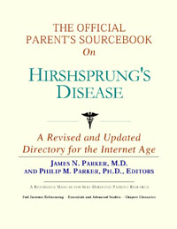 Since the late 1990s, physicians have seen a general increase in parent Internet usage rates. Parents frequently enter their children’s doctor’s offices with printed Web pages of home remedies in the guise of latest medical research. This scenario is so common that doctors often spend more time dispelling misleading information than guiding children through sound therapies. The Official Parent’s Sourcebook on Hirshsprung’s Disease has been created for parents who have decided to make education and research an integral part of the treatment process. The pages that follow will tell you where and how to look for information covering virtually all topics related to Hirshsprung’s disease, from the essentials to the most advanced areas of research. The title of this book includes the word “official.” This reflects the fact that the sourcebook draws from public, academic, government, and peer-reviewed research. Selected readings from various agencies are reproduced to give you some of the latest official information available to date on Hirshsprung’s disease. Given parents’ increasing sophistication in using the Internet, abundant references to reliable Internet-based resources are provided throughout this sourcebook. Where possible, guidance is provided on how to obtain free-of-charge, primary research results as well as more detailed information via the Internet. E-book and electronic versions of this sourcebook are fully interactive with each of the Internet sites mentioned (clicking on a hyperlink automatically opens your browser to the site indicated). Hard copy users of this sourcebook can type cited Web addresses directly into their browsers to obtain access to the corresponding sites. Since we are working with ICON Health Publications, hard copy Sourcebooks are frequently updated and printed on demand to ensure that the information provided is current. In addition to extensive references accessible via the Internet, every chapter presents a “Vocabulary Builder.” Many health guides offer glossaries of technical or uncommon terms in an appendix. In editing this sourcebook, we have decided to place a smaller glossary within each chapter that covers terms used in that chapter. Given the technical nature of some chapters, you may need to revisit many sections. Building one’s vocabulary of medical terms in such a gradual manner has been shown to improve the learning process. We must emphasize that no sourcebook on Hirshsprung’s disease should affirm that a specific diagnostic procedure or treatment discussed in a research study, patent, or doctoral dissertation is “correct” or your child’s best option. This sourcebook is no exception. Each child is unique. Deciding on appropriate options is always up to parents in consultation with their children’s physicians and healthcare providers. Organization This sourcebook is organized into three parts. Part I explores basic techniques to researching Hirshsprung’s disease (e.g. finding guidelines on diagnosis, treatments, and prognosis), followed by a number of topics, including information on how to get in touch with organizations, associations, or other parent networks dedicated to Hirshsprung’s disease. It also gives you sources of information that can help you find a doctor in your local area specializing in treating Hirshsprung’s disease. Collectively, the material presented in Part I is a complete primer on basic research topics for Hirshsprung’s disease. Part II moves on to advanced research dedicated to Hirshsprung’s disease. Part II is intended for those willing to invest many hours of hard work and study. It is here that we direct you to the latest scientific and applied research on Hirshsprung’s disease. When possible, contact names, links via the Internet, and summaries are provided. It is in Part II where the vocabulary process becomes important as authors publishing advanced research frequently use highly specialized language. In general, every attempt is made to recommend “free-to-use” options. Part III provides appendices of useful background reading covering Hirshsprung’s disease or related disorders. The appendices are dedicated to more pragmatic issues facing parents. Accessing materials via medical libraries may be the only option for some parents, so a guide is provided for finding local medical libraries which are open to the public. Part III, therefore, focuses on advice that goes beyond the biological and scientific issues facing children with Hirshsprung’s disease and their families. Scope While this sourcebook covers Hirshsprung’s disease, doctors, research publications, and specialists may refer to your child’s condition using a variety of terms. Therefore, you should understand that Hirshsprung’s disease is often considered a synonym or a condition closely related to the following: