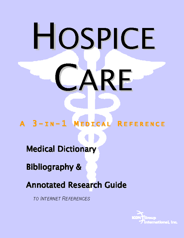 Forward Chapter 1. Studies on Hospice Care Overview The Combined Health Information Database Federally Funded Research on Hospice Care E-Journals: PubMed Central The National Library of Medicine: PubMed Chapter 2. Alternative Medicine and Hospice Care Overview National Center for Complementary and Alternative Medicine Additional Web Resources General References Chapter 3. Dissertations on Hospice Care Overview Dissertations on Hospice Care Keeping Current Chapter 4. Books on Hospice Care Overview Book Summaries: Federal Agencies Book Summaries: Online Booksellers Chapters on Hospice Care Directories Chapter 5. Multimedia on Hospice Care Overview Video Recordings Audio Recordings Chapter 6. Periodicals and News on Hospice Care Overview News Services and Press Releases Newsletter Articles Academic Periodicals covering Hospice Care Appendix A. Physician Resources Overview NIH Guidelines NIH Databases Other Commercial Databases Appendix B. Patient Resources Overview Patient Guideline Sources Finding Associations Appendix C. Finding Medical Libraries Overview Preparation Finding a Local Medical Library Medical Libraries in the U.S. and Canada ONLINE GLOSSARIES Online Dictionary Directories HOSPICE CARE DICTIONARY INDEX |