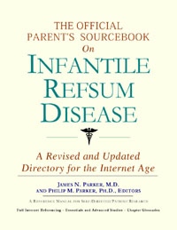 Since the late 1990s, physicians have seen a general increase in parent Internet usage rates. Parents frequently enter their children’s doctor’s offices with printed Web pages of home remedies in the guise of latest medical research. This scenario is so common that doctors often spend more time dispelling misleading information than guiding children through sound therapies. The Official Parent’s Sourcebook on Infantile Refsum Disease has been created for parents who have decided to make education and research an integral part of the treatment process. The pages that follow will tell you where and how to look for information covering virtually all topics related to infantile Refsum disease, from the essentials to the most advanced areas of research. The title of this book includes the word “official.” This reflects the fact that the sourcebook draws from public, academic, government, and peer-reviewed research. Selected readings from various agencies are reproduced to give you some of the latest official information available to date on infantile Refsum disease. Given parents’ increasing sophistication in using the Internet, abundant references to reliable Internet-based resources are provided throughout this sourcebook. Where possible, guidance is provided on how to obtain free-of-charge, primary research results as well as more detailed information via the Internet. E-book and electronic versions of this sourcebook are fully interactive with each of the Internet sites mentioned (clicking on a hyperlink automatically opens your browser to the site indicated). Hard copy users of this sourcebook can type cited Web addresses directly into their browsers to obtain access to the corresponding sites. Since we are working with ICON Health Publications, hard copy Sourcebooks are frequently updated and printed on demand to ensure that the information provided is current. In addition to extensive references accessible via the Internet, every chapter presents a “Vocabulary Builder.” Many health guides offer glossaries of technical or uncommon terms in an appendix. In editing this sourcebook, we have decided to place a smaller glossary within each chapter that covers terms used in that chapter. Given the technical nature of some chapters, you may need to revisit many sections. Building one’s vocabulary of medical terms in such a gradual manner has been shown to improve the learning process. We must emphasize that no sourcebook on infantile Refsum disease should affirm that a specific diagnostic procedure or treatment discussed in a research study, patent, or doctoral dissertation is “correct” or your child’s best option. This sourcebook is no exception. Each child is unique. Deciding on appropriate options is always up to parents in consultation with their children’s physicians and healthcare providers. Organization This sourcebook is organized into three parts. Part I explores basic techniques to researching infantile Refsum disease (e.g. finding guidelines on diagnosis, treatments, and prognosis), followed by a number of topics, including information on how to get in touch with organizations, associations, or other parent networks dedicated to infantile Refsum disease. It also gives you sources of information that can help you find a doctor in your local area specializing in treating infantile Refsum disease. Collectively, the material presented in Part I is a complete primer on basic research topics for infantile Refsum disease. Part II moves on to advanced research dedicated to infantile Refsum disease. Part II is intended for those willing to invest many hours of hard work and study. It is here that we direct you to the latest scientific and applied research on infantile Refsum disease. When possible, contact names, links via the Internet, and summaries are provided. It is in Part II where the vocabulary process becomes important as authors publishing advanced research frequently use highly specialized language. In general, every attempt is made to recommend “free-to-use” options. Part III provides appendices of useful background reading covering infantile Refsum disease or related disorders. The appendices are dedicated to more pragmatic issues facing parents. Accessing materials via medical libraries may be the only option for some parents, so a guide is provided for finding local medical libraries which are open to the public. Part III, therefore, focuses on advice that goes beyond the biological and scientific issues facing children with infantile Refsum disease and their families. Scope While this sourcebook covers infantile Refsum disease, doctors, research publications, and specialists may refer to your child’s condition using a variety of terms. Therefore, you should understand that infantile Refsum disease is often considered a synonym or a condition closely related to the following: