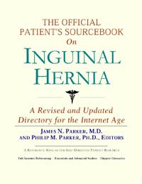 Since the late 1990s, physicians have seen a general increase in patient Internet usage rates. Patients frequently enter their doctor’s offices with printed Web pages of home remedies in the guise of latest medical research. This scenario is so common that doctors often spend more time dispelling misleading information than guiding patients through sound therapies. The Official Patient’s Sourcebook on Inguinal Hernia has been created for patients who have decided to make education and research an integral part of the treatment process. The pages that follow will tell you where and how to look for information covering virtually all topics related to inguinal hernia, from the essentials to the most advanced areas of research. The title of this book includes the word “official.” This reflects the fact that the sourcebook draws from public, academic, government, and peer-reviewed research. Selected readings from various agencies are reproduced to give you some of the latest official information available to date on inguinal hernia. Given patients’ increasing sophistication in using the Internet, abundant references to reliable Internet-based resources are provided throughout this sourcebook. Where possible, guidance is provided on how to obtain free-of-charge, primary research results as well as more detailed information via the Internet. E-book and electronic versions of this sourcebook are fully interactive with each of the Internet sites mentioned (clicking on a hyperlink automatically opens your browser to the site indicated). Hard copy users of this sourcebook can type cited Web addresses directly into their browsers to obtain access to the corresponding sites. Since we are working with ICON Health Publications, hard copy Sourcebooks are frequently updated and printed on demand to ensure that the information provided is current. In addition to extensive references accessible via the Internet, every chapter presents a “Vocabulary Builder.” Many health guides offer glossaries of technical or uncommon terms in an appendix. In editing this sourcebook, we have decided to place a smaller glossary within each chapter that covers terms used in that chapter. Given the technical nature of some chapters, you may need to revisit many sections. Building one’s vocabulary of medical terms in such a gradual manner has been shown to improve the learning process. We must emphasize that no sourcebook on inguinal hernia should affirm that a specific diagnostic procedure or treatment discussed in a research study, patent, or doctoral dissertation is “correct” or your best option. This sourcebook is no exception. Each patient is unique. Deciding on appropriate options is always up to the patient in consultation with their physician and healthcare providers. Organization This sourcebook is organized into three parts. Part I explores basic techniques to researching inguinal hernia (e.g. finding guidelines on diagnosis, treatments, and prognosis), followed by a number of topics, including information on how to get in touch with organizations, associations, or other patient networks dedicated to inguinal hernia. It also gives you sources of information that can help you find a doctor in your local area specializing in diagnosing and treating inguinal hernia. Collectively, the material presented in Part I is a complete primer on basic research topics for patients with inguinal hernia. Part II moves on to advanced research dedicated to inguinal hernia. Part II is intended for those willing to invest many hours of hard work and study. It is here that we direct you to the latest scientific and applied research on inguinal hernia. When possible, contact names, links via the Internet, and summaries are provided. It is in Part II where the vocabulary process becomes important as authors publishing advanced research frequently use highly specialized language. In general, every attempt is made to recommend “free-to-use” options. Part III provides appendices of useful background reading for all patients with inguinal hernia or related disorders. The appendices are dedicated to more pragmatic issues faced by many patients with inguinal hernia. Accessing materials via medical libraries may be the only option for some readers, so a guide is provided for finding local medical libraries which are open to the public. Part III, therefore, focuses on advice that goes beyond the biological and scientific issues facing patients with inguinal hernia. Scope While this sourcebook covers inguinal hernia, your doctor, research publications, and specialists may refer to your condition using a variety of terms. Therefore, you should understand that inguinal hernia is often considered a synonym or a condition closely related to the following: