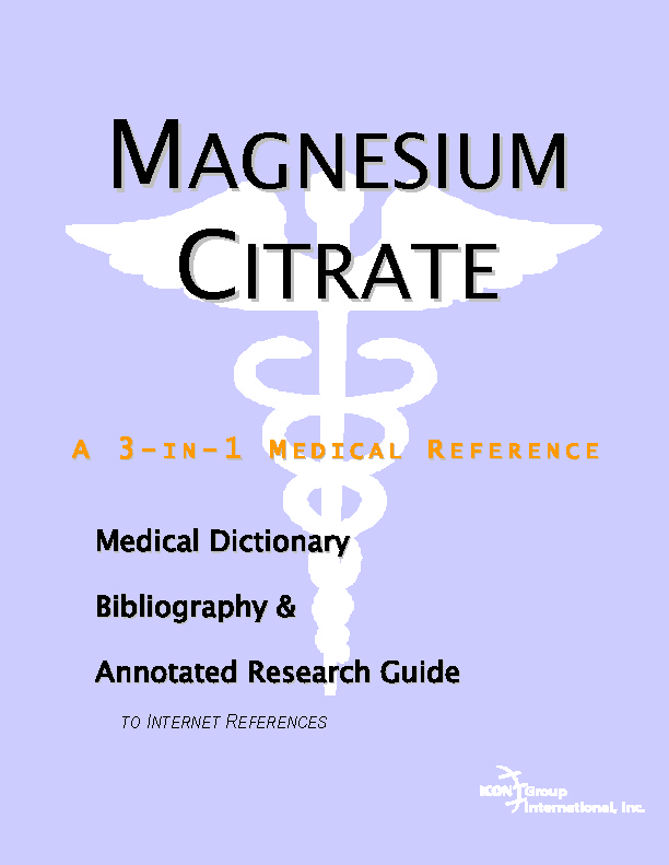 In addition to offering a structured and comprehensive bibliography, this medical reference on magnesium citrate will quickly direct you to resources and reliable information on the Internet, from the essentials to the most advanced areas of research. Public, academic, government, and peer-reviewed research studies are emphasized. Various abstracts are reproduced to give you some of the latest official information available to date. Abundant guidance is given on how to obtain free-of-charge primary research results via the Internet. E-book and electronic versions of this book are fully interactive with the Internet. For readers unfamiliar with the Internet, detailed instructions are offered on how to access electronic resources. For readers unfamiliar with medical terminology, a comprehensive glossary is provided. For readers without access to Internet resources, a directory of medical libraries, that have or can locate references cited here, is given. We hope these resources will prove useful to the widest possible audience seeking information on magnesium citrate. |