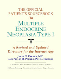 Since the late 1990s, physicians have seen a general increase in patient Internet usage rates. Patients frequently enter their doctor’s offices with printed Web pages of home remedies in the guise of latest medical research. This scenario is so common that doctors often spend more time dispelling misleading information than guiding patients through sound therapies. The Official Patient’s Sourcebook on Multiple Endocrine Neoplasia Type 1 has been created for patients who have decided to make education and research an integral part of the treatment process. The pages that follow will tell you where and how to look for information covering virtually all topics related to multiple endocrine neoplasia type 1, from the essentials to the most advanced areas of research. The title of this book includes the word “official.” This reflects the fact that the sourcebook draws from public, academic, government, and peer-reviewed research. Selected readings from various agencies are reproduced to give you some of the latest official information available to date on multiple endocrine neoplasia type 1. Given patients’ increasing sophistication in using the Internet, abundant references to reliable Internet-based resources are provided throughout this sourcebook. Where possible, guidance is provided on how to obtain free-of-charge, primary research results as well as more detailed information via the Internet. E-book and electronic versions of this sourcebook are fully interactive with each of the Internet sites mentioned (clicking on a hyperlink automatically opens your browser to the site indicated). Hard copy users of this sourcebook can type cited Web addresses directly into their browsers to obtain access to the corresponding sites. Since we are working with ICON Health Publications, hard copy Sourcebooks are frequently updated and printed on demand to ensure that the information provided is current. In addition to extensive references accessible via the Internet, every chapter presents a “Vocabulary Builder.” Many health guides offer glossaries of technical or uncommon terms in an appendix. In editing this sourcebook, we have decided to place a smaller glossary within each chapter that covers terms used in that chapter. Given the technical nature of some chapters, you may need to revisit many sections. Building one’s vocabulary of medical terms in such a gradual manner has been shown to improve the learning process. We must emphasize that no sourcebook on multiple endocrine neoplasia type 1 should affirm that a specific diagnostic procedure or treatment discussed in a research study, patent, or doctoral dissertation is “correct” or your best option. This sourcebook is no exception. Each patient is unique. Deciding on appropriate options is always up to the patient in consultation with their physician and healthcare providers. Organization This sourcebook is organized into three parts. Part I explores basic techniques to researching multiple endocrine neoplasia type 1 (e.g. finding guidelines on diagnosis, treatments, and prognosis), followed by a number of topics, including information on how to get in touch with organizations, associations, or other patient networks dedicated to multiple endocrine neoplasia type 1. It also gives you sources of information that can help you find a doctor in your local area specializing in treating multiple endocrine neoplasia type 1. Collectively, the material presented in Part I is a complete primer on basic research topics for patients with multiple endocrine neoplasia type 1. Part II moves on to advanced research dedicated to multiple endocrine neoplasia type 1. Part II is intended for those willing to invest many hours of hard work and study. It is here that we direct you to the latest scientific and applied research on multiple endocrine neoplasia type 1. When possible, contact names, links via the Internet, and summaries are provided. It is in Part II where the vocabulary process becomes important as authors publishing advanced research frequently use highly specialized language. In general, every attempt is made to recommend “free-to-use” options. Part III provides appendices of useful background reading for all patients with multiple endocrine neoplasia type 1 or related disorders. The appendices are dedicated to more pragmatic issues faced by many patients with multiple endocrine neoplasia type 1. Accessing materials via medical libraries may be the only option for some readers, so a guide is provided for finding local medical libraries which are open to the public. Part III, therefore, focuses on advice that goes beyond the biological and scientific issues facing patients with multiple endocrine neoplasia type 1. Scope While this sourcebook covers multiple endocrine neoplasia type 1, your doctor, research publications, and specialists may refer to your condition using a variety of terms. Therefore, you should understand that multiple endocrine neoplasia type 1 is often considered a synonym or a condition closely related to the following: