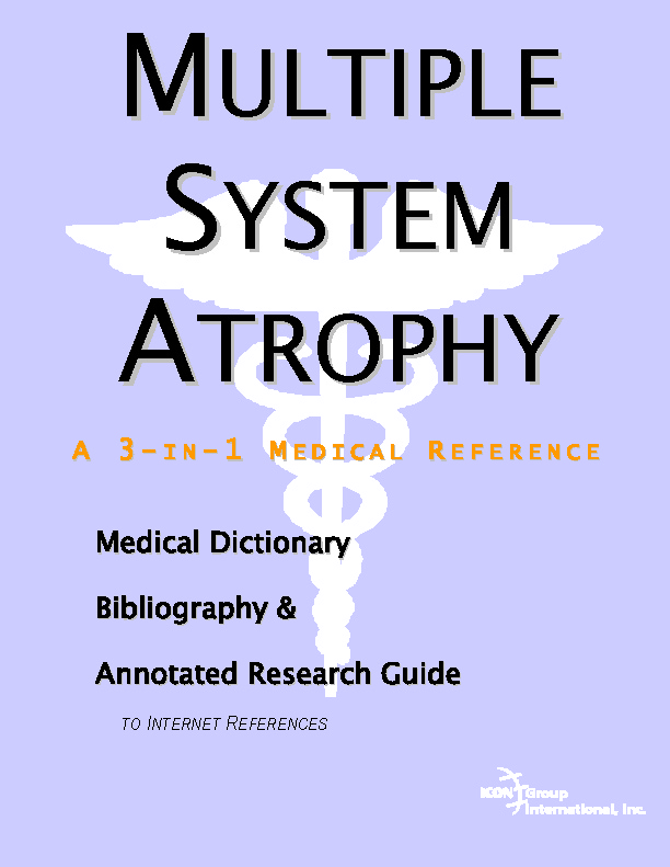 Forward Chapter 1. Studies on Multiple System Atrophy Overview The Combined Health Information Database Federally Funded Research on Multiple System Atrophy The National Library of Medicine: PubMed Chapter 2. Nutrition and Multiple System Atrophy Overview Finding Nutrition Studies on Multiple System Atrophy Federal Resources on Nutrition Additional Web Resources Chapter 3. Alternative Medicine and Multiple System Atrophy Overview National Center for Complementary and Alternative Medicine Additional Web Resources General References Appendix A. Physician Resources Overview NIH Guidelines NIH Databases Other Commercial Databases Appendix B. Patient Resources Overview Patient Guideline Sources Finding Associations Appendix C. Finding Medical Libraries Overview Preparation Finding a Local Medical Library Medical Libraries in the U.S. and Canada ONLINE GLOSSARIES Online Dictionary Directories MULTIPLE SYSTEM ATROPHY DICTIONARY INDEX |