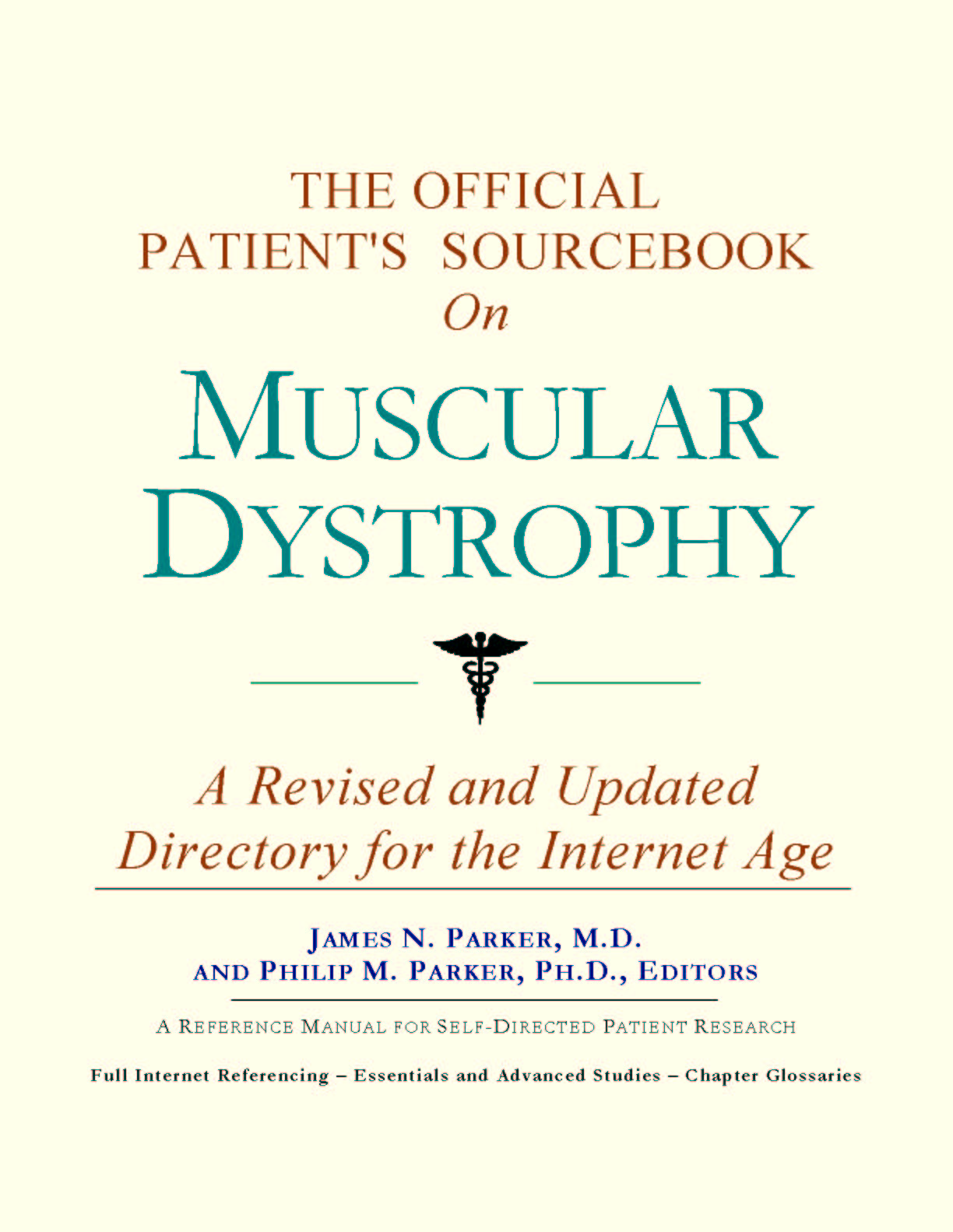 Since the late 1990s, physicians have seen a general increase in patient Internet usage rates. Patients frequently enter their doctor's offices with printed Web pages of home remedies in the guise of latest medical research. This scenario is so common that doctors often spend more time dispelling misleading information than guiding patients through sound therapies. The Official Patient’s Sourcebook on Muscular Dystrophy has been created for patients who have decided to make education and research an integral part of the treatment process. The pages that follow will tell you where and how to look for information covering virtually all topics related to muscular dystrophy, from the essentials to the most advanced areas of research. The title of this book includes the word “official.” This reflects the fact that the sourcebook draws from public, academic, government, and peer-reviewed research. Selected readings from various agencies are reproduced to give you some of the latest official information available to date on muscular dystrophy. Given patients’ increasing sophistication in using the Internet, abundant references to reliable Internet-based resources are provided throughout this sourcebook. Where possible, guidance is provided on how to obtain free-of-charge, primary research results as well as more detailed information via the Internet. E-book and electronic versions of this sourcebook are fully interactive with each of the Internet sites mentioned (clicking on a hyperlink automatically opens your browser to the site indicated). Hard copy users of this sourcebook can type cited Web addresses directly into their browsers to obtain access to the corresponding sites. Since we are working with ICON Health Publications, hard copy Sourcebooks are frequently updated and printed on demand to ensure that the information provided is current. In addition to extensive references accessible via the Internet, every chapter presents a “Vocabulary Builder.” Many health guides offer glossaries of technical or uncommon terms in an appendix. In editing this sourcebook, we have decided to place a smaller glossary within each chapter that covers terms used in that chapter. Given the technical nature of some chapters, you may need to revisit many sections. Building one’s vocabulary of medical terms in such a gradual manner has been shown to improve the learning process. We must emphasize that no sourcebook on muscular dystrophy should affirm that a specific diagnostic procedure or treatment discussed in a research study, patent, or doctoral dissertation is “correct” or your best option. This sourcebook is no exception. Each patient is unique. Deciding on appropriate options is always up to the patient in consultation with their physician and healthcare providers. Organization This sourcebook is organized into three parts. Part I explores basic techniques to researching muscular dystrophy (e.g. finding guidelines on diagnosis, treatments, and prognosis), followed by a number of topics, including information on how to get in touch with organizations, associations, or other patient networks dedicated to muscular dystrophy. It also gives you sources of information that can help you find a doctor in your local area specializing in treating muscular dystrophy. Collectively, the material presented in Part I is a complete primer on basic research topics for patients with muscular dystrophy. Part II moves on to advanced research dedicated to muscular dystrophy. Part II is intended for those willing to invest many hours of hard work and study. It is here that we direct you to the latest scientific and applied research on muscular dystrophy. When possible, contact names, links via the Internet, and summaries are provided. It is in Part II where the vocabulary process becomes important as authors publishing advanced research frequently use highly specialized language. In general, every attempt is made to recommend “free-to-use” options. Part III provides appendices of useful background reading for all patients with muscular dystrophy or related disorders. The appendices are dedicated to more pragmatic issues faced by many patients with muscular dystrophy. Accessing materials via medical libraries may be the only option for some readers, so a guide is provided for finding local medical libraries which are open to the public. Part III, therefore, focuses on advice that goes beyond the biological and scientific issues facing patients with muscular dystrophy. Scope While this sourcebook covers muscular dystrophy, your doctor, research publications, and specialists may refer to your condition using a variety of terms. Therefore, you should understand that muscular dystrophy is often considered a synonym or a condition closely related to the following: