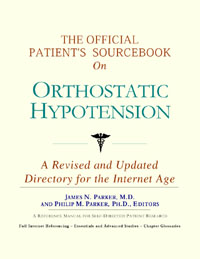 Since the late 1990s, physicians have seen a general increase in patient Internet usage rates. Patients frequently enter their doctor's offices with printed Web pages of home remedies in the guise of latest medical research. This scenario is so common that doctors often spend more time dispelling misleading information than guiding patients through sound therapies. The Official Patient’s Sourcebook on Orthostatic Hypotension has been created for patients who have decided to make education and research an integral part of the treatment process. The pages that follow will tell you where and how to look for information covering virtually all topics related to orthostatic hypotension, from the essentials to the most advanced areas of research. The title of this book includes the word “official.” This reflects the fact that the sourcebook draws from public, academic, government, and peer-reviewed research. Selected readings from various agencies are reproduced to give you some of the latest official information available to date on orthostatic hypotension. Given patients’ increasing sophistication in using the Internet, abundant references to reliable Internet-based resources are provided throughout this sourcebook. Where possible, guidance is provided on how to obtain free-of-charge, primary research results as well as more detailed information via the Internet. E-book and electronic versions of this sourcebook are fully interactive with each of the Internet sites mentioned (clicking on a hyperlink automatically opens your browser to the site indicated). Hard copy users of this sourcebook can type cited Web addresses directly into their browsers to obtain access to the corresponding sites. Since we are working with ICON Health Publications, hard copy Sourcebooks are frequently updated and printed on demand to ensure that the information provided is current. In addition to extensive references accessible via the Internet, every chapter presents a “Vocabulary Builder.” Many health guides offer glossaries of technical or uncommon terms in an appendix. In editing this sourcebook, we have decided to place a smaller glossary within each chapter that covers terms used in that chapter. Given the technical nature of some chapters, you may need to revisit many sections. Building one’s vocabulary of medical terms in such a gradual manner has been shown to improve the learning process. We must emphasize that no sourcebook on orthostatic hypotension should affirm that a specific diagnostic procedure or treatment discussed in a research study, patent, or doctoral dissertation is “correct” or your best option. This sourcebook is no exception. Each patient is unique. Deciding on appropriate options is always up to the patient in consultation with their physician and healthcare providers. Organization This sourcebook is organized into three parts. Part I explores basic techniques to researching orthostatic hypotension (e.g. finding guidelines on diagnosis, treatments, and prognosis), followed by a number of topics, including information on how to get in touch with organizations, associations, or other patient networks dedicated to orthostatic hypotension. It also gives you sources of information that can help you find a doctor in your local area specializing in treating orthostatic hypotension. Collectively, the material presented in Part I is a complete primer on basic research topics for patients with orthostatic hypotension. Part II moves on to advanced research dedicated to orthostatic hypotension. Part II is intended for those willing to invest many hours of hard work and study. It is here that we direct you to the latest scientific and applied research on orthostatic hypotension. When possible, contact names, links via the Internet, and summaries are provided. It is in Part II where the vocabulary process becomes important as authors publishing advanced research frequently use highly specialized language. In general, every attempt is made to recommend “free-to-use” options. Part III provides appendices of useful background reading for all patients with orthostatic hypotension or related disorders. The appendices are dedicated to more pragmatic issues faced by many patients with orthostatic hypotension. Accessing materials via medical libraries may be the only option for some readers, so a guide is provided for finding local medical libraries which are open to the public. Part III, therefore, focuses on advice that goes beyond the biological and scientific issues facing patients with orthostatic hypotension. Scope While this sourcebook covers orthostatic hypotension, your doctor, research publications, and specialists may refer to your condition using a variety of terms. Therefore, you should understand that orthostatic hypotension is often considered a synonym or a condition closely related to the following: