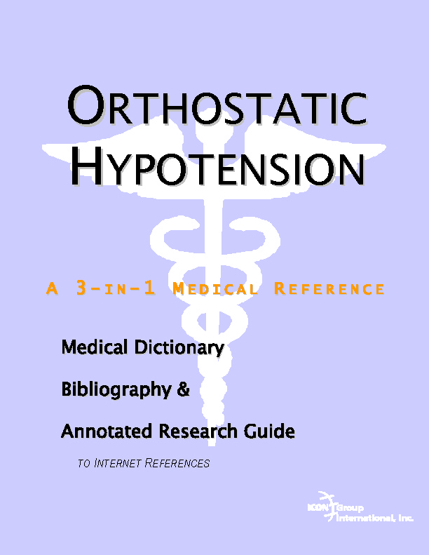 In addition to offering a structured and comprehensive bibliography, this medical reference on orthostatic hypotension will quickly direct you to resources and reliable information on the Internet, from the essentials to the most advanced areas of research. Public, academic, government, and peer-reviewed research studies are emphasized. Various abstracts are reproduced to give you some of the latest official information available to date. Abundant guidance is given on how to obtain free-of-charge primary research results via the Internet. E-book and electronic versions of this book are fully interactive with the Internet. For readers unfamiliar with the Internet, detailed instructions are offered on how to access electronic resources. For readers unfamiliar with medical terminology, a comprehensive glossary is provided. For readers without access to Internet resources, a directory of medical libraries, that have or can locate references cited here, is given. We hope these resources will prove useful to the widest possible audience seeking information on orthostatic hypotension. |