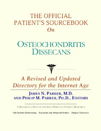 Since the late 1990s, physicians have seen a general increase in patient Internet usage rates. Patients frequently enter their doctor's offices with printed Web pages of home remedies in the guise of latest medical research. This scenario is so common that doctors often spend more time dispelling misleading information than guiding patients through sound therapies. The Official Patient’s Sourcebook on Osteochondritis Dissecans has been created for patients who have decided to make education and research an integral part of the treatment process. The pages that follow will tell you where and how to look for information covering virtually all topics related to osteochondritis dissecans, from the essentials to the most advanced areas of research. The title of this book includes the word “official.” This reflects the fact that the sourcebook draws from public, academic, government, and peer-reviewed research. Selected readings from various agencies are reproduced to give you some of the latest official information available to date on osteochondritis dissecans. Given patients’ increasing sophistication in using the Internet, abundant references to reliable Internet-based resources are provided throughout this sourcebook. Where possible, guidance is provided on how to obtain free-of-charge, primary research results as well as more detailed information via the Internet. E-book and electronic versions of this sourcebook are fully interactive with each of the Internet sites mentioned (clicking on a hyperlink automatically opens your browser to the site indicated). Hard copy users of this sourcebook can type cited Web addresses directly into their browsers to obtain access to the corresponding sites. Since we are working with ICON Health Publications, hard copy Sourcebooks are frequently updated and printed on demand to ensure that the information provided is current. In addition to extensive references accessible via the Internet, every chapter presents a “Vocabulary Builder.” Many health guides offer glossaries of technical or uncommon terms in an appendix. In editing this sourcebook, we have decided to place a smaller glossary within each chapter that covers terms used in that chapter. Given the technical nature of some chapters, you may need to revisit many sections. Building one’s vocabulary of medical terms in such a gradual manner has been shown to improve the learning process. We must emphasize that no sourcebook on osteochondritis dissecans should affirm that a specific diagnostic procedure or treatment discussed in a research study, patent, or doctoral dissertation is “correct” or your best option. This sourcebook is no exception. Each patient is unique. Deciding on appropriate options is always up to the patient in consultation with their physician and healthcare providers. Organization This sourcebook is organized into three parts. Part I explores basic techniques to researching osteochondritis dissecans (e.g. finding guidelines on diagnosis, treatments, and prognosis), followed by a number of topics, including information on how to get in touch with organizations, associations, or other patient networks dedicated to osteochondritis dissecans. It also gives you sources of information that can help you find a doctor in your local area specializing in treating osteochondritis dissecans. Collectively, the material presented in Part I is a complete primer on basic research topics for patients with osteochondritis dissecans. Part II moves on to advanced research dedicated to osteochondritis dissecans. Part II is intended for those willing to invest many hours of hard work and study. It is here that we direct you to the latest scientific and applied research on osteochondritis dissecans. When possible, contact names, links via the Internet, and summaries are provided. It is in Part II where the vocabulary process becomes important as authors publishing advanced research frequently use highly specialized language. In general, every attempt is made to recommend “free-to-use” options. Part III provides appendices of useful background reading for all patients with osteochondritis dissecans or related disorders. The appendices are dedicated to more pragmatic issues faced by many patients with osteochondritis dissecans. Accessing materials via medical libraries may be the only option for some readers, so a guide is provided for finding local medical libraries which are open to the public. Part III, therefore, focuses on advice that goes beyond the biological and scientific issues facing patients with osteochondritis dissecans. Scope While this sourcebook covers osteochondritis dissecans, your doctor, research publications, and specialists may refer to your condition using a variety of terms. Therefore, you should understand that osteochondritis dissecans is often considered a synonym or a condition closely related to the following: