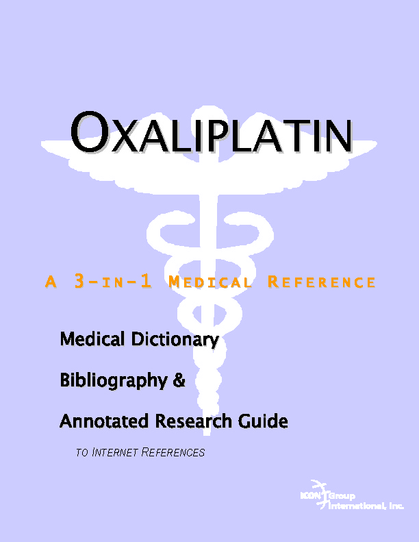 In March 2001, the National Institutes of Health issued the following warning: "The number of Web sites offering health-related resources grows every day. Many sites provide valuable information, while others may have information that is unreliable or misleading." Furthermore, because of the rapid increase in Internet-based information, many hours can be wasted searching, selecting, and printing. Since only the smallest fraction of information dealing with oxaliplatin is indexed in search engines, such as www.google.com or others, a non-systematic approach to Internet research can be not only time consuming, but also incomplete. This book was created for medical professionals, students, and members of the general public who want to conduct medical research using the most advanced tools available and spending the least amount of time doing so. |