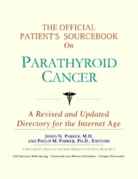 Since the late 1990s, physicians have seen a general increase in patient Internet usage rates. Patients frequently enter their doctor’s offices with printed Web pages of home remedies in the guise of latest medical research. This scenario is so common that doctors often spend more time dispelling misleading information than guiding patients through sound therapies. The Official Patient’s Sourcebook on Parathyroid Cancer has been created for patients who have decided to make education and research an integral part of the treatment process. The pages that follow will tell you where and how to look for information covering virtually all topics related to parathyroid cancer, from the essentials to the most advanced areas of research. The title of this book includes the word “official.” This reflects the fact that the sourcebook draws from public, academic, government, and peer-reviewed research. Selected readings from various agencies are reproduced to give you some of the latest official information available to date on parathyroid cancer. Given patients’ increasing sophistication in using the Internet, abundant references to reliable Internet-based resources are provided throughout this sourcebook. Where possible, guidance is provided on how to obtain free-of-charge, primary research results as well as more detailed information via the Internet. E-book and electronic versions of this sourcebook are fully interactive with each of the Internet sites mentioned (clicking on a hyperlink automatically opens your browser to the site indicated). Hard copy users of this sourcebook can type cited Web addresses directly into their browsers to obtain access to the corresponding sites. Since we are working with ICON Health Publications, hard copy Sourcebooks are frequently updated and printed on demand to ensure that the information provided is current. In addition to extensive references accessible via the Internet, every chapter presents a “Vocabulary Builder.” Many health guides offer glossaries of technical or uncommon terms in an appendix. In editing this sourcebook, we have decided to place a smaller glossary within each chapter that covers terms used in that chapter. Given the technical nature of some chapters, you may need to revisit many sections. Building one’s vocabulary of medical terms in such a gradual manner has been shown to improve the learning process. We must emphasize that no sourcebook on parathyroid cancer should affirm that a specific diagnostic procedure or treatment discussed in a research study, patent, or doctoral dissertation is “correct” or your best option. This sourcebook is no exception. Each patient is unique. Deciding on appropriate options is always up to the patient in consultation with their physician and healthcare providers. Organization This sourcebook is organized into three parts. Part I explores basic techniques to researching parathyroid cancer (e.g. finding guidelines on diagnosis, treatments, and prognosis), followed by a number of topics, including information on how to get in touch with organizations, associations, or other patient networks dedicated to parathyroid cancer. It also gives you sources of information that can help you find a doctor in your local area specializing in treating parathyroid cancer. Collectively, the material presented in Part I is a complete primer on basic research topics for patients with parathyroid cancer. Part II moves on to advanced research dedicated to parathyroid cancer. Part II is intended for those willing to invest many hours of hard work and study. It is here that we direct you to the latest scientific and applied research on parathyroid cancer. When possible, contact names, links via the Internet, and summaries are provided. It is in Part II where the vocabulary process becomes important as authors publishing advanced research frequently use highly specialized language. In general, every attempt is made to recommend “free-to-use” options. Part III provides appendices of useful background reading for all patients with parathyroid cancer or related disorders. The appendices are dedicated to more pragmatic issues faced by many patients with parathyroid cancer. Accessing materials via medical libraries may be the only option for some readers, so a guide is provided for finding local medical libraries which are open to the public. Part III, therefore, focuses on advice that goes beyond the biological and scientific issues facing patients with parathyroid cancer. Scope While this sourcebook covers parathyroid cancer, your doctor, research publications, and specialists may refer to your condition using a variety of terms. Therefore, you should understand that parathyroid cancer is often considered a synonym or a condition closely related to the following: