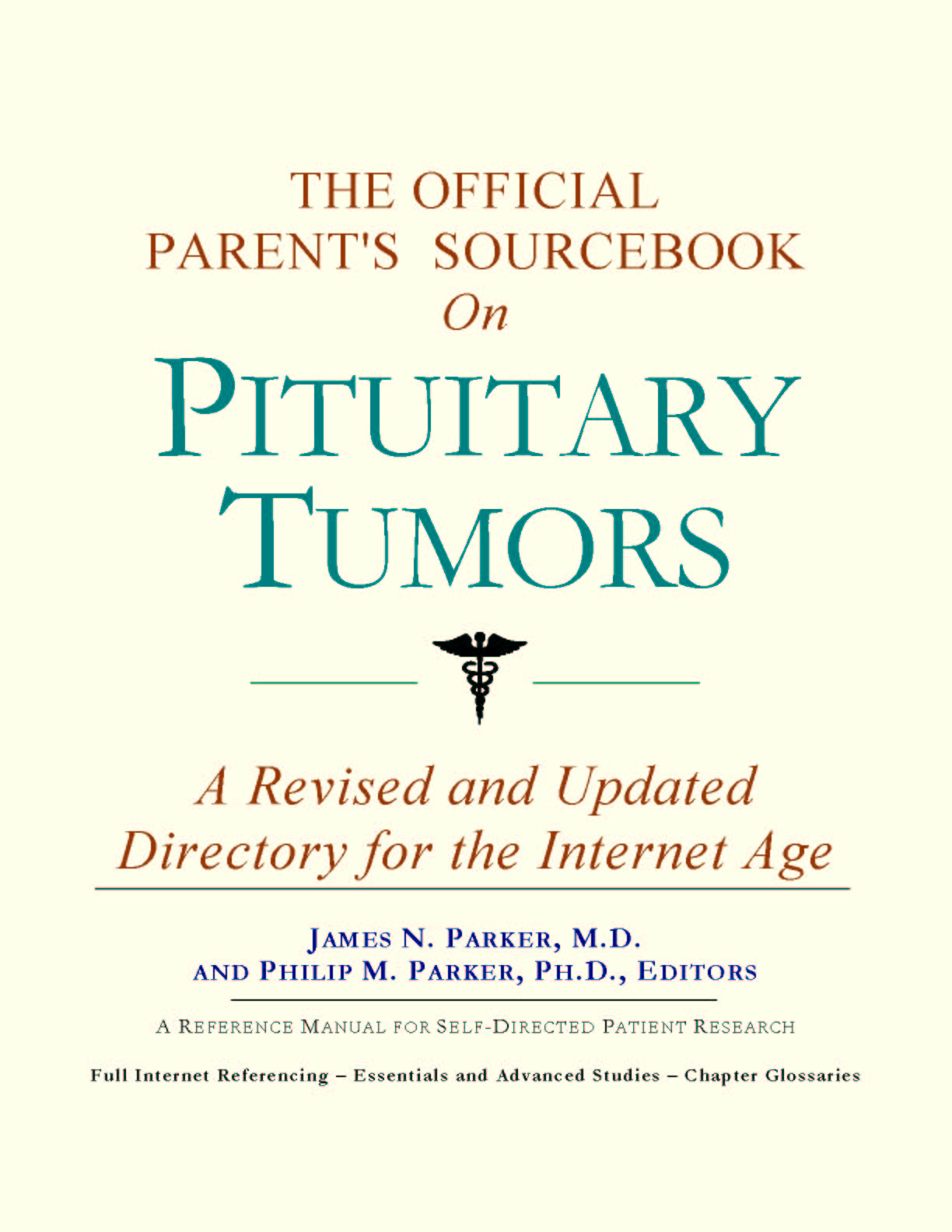 Since the late 1990s, physicians have seen a general increase in parent Internet usage rates. Parents frequently enter their children’s doctor's offices with printed Web pages of home remedies in the guise of latest medical research. This scenario is so common that doctors often spend more time dispelling misleading information than guiding children through sound therapies. The Official Parent’s Sourcebook on Pituitary Tumors has been created for parents who have decided to make education and research an integral part of the treatment process. The pages that follow will tell you where and how to look for information covering virtually all topics related to pituitary tumors, from the essentials to the most advanced areas of research. The title of this book includes the word “official.” This reflects the fact that the sourcebook draws from public, academic, government, and peer-reviewed research. Selected readings from various agencies are reproduced to give you some of the latest official information available to date on pituitary tumors. Given parents’ increasing sophistication in using the Internet, abundant references to reliable Internet-based resources are provided throughout this sourcebook. Where possible, guidance is provided on how to obtain free-of-charge, primary research results as well as more detailed information via the Internet. E-book and electronic versions of this sourcebook are fully interactive with each of the Internet sites mentioned (clicking on a hyperlink automatically opens your browser to the site indicated). Hard copy users of this sourcebook can type cited Web addresses directly into their browsers to obtain access to the corresponding sites. Since we are working with ICON Health Publications, hard copy Sourcebooks are frequently updated and printed on demand to ensure that the information provided is current. In addition to extensive references accessible via the Internet, every chapter presents a “Vocabulary Builder.” Many health guides offer glossaries of technical or uncommon terms in an appendix. In editing this sourcebook, we have decided to place a smaller glossary within each chapter that covers terms used in that chapter. Given the technical nature of some chapters, you may need to revisit many sections. Building one’s vocabulary of medical terms in such a gradual manner has been shown to improve the learning process. We must emphasize that no sourcebook on pituitary tumors should affirm that a specific diagnostic procedure or treatment discussed in a research study, patent, or doctoral dissertation is “correct” or your child’s best option. This sourcebook is no exception. Each child is unique. Deciding on appropriate options is always up to parents in consultation with their children’s physicians and healthcare providers. Organization This sourcebook is organized into three parts. Part I explores basic techniques to researching pituitary tumors (e.g. finding guidelines on diagnosis, treatments, and prognosis), followed by a number of topics, including information on how to get in touch with organizations, associations, or other parent networks dedicated to pituitary tumors. It also gives you sources of information that can help you find a doctor in your local area specializing in treating pituitary tumors. Collectively, the material presented in Part I is a complete primer on basic research topics for pituitary tumors. Part II moves on to advanced research dedicated to pituitary tumors. Part II is intended for those willing to invest many hours of hard work and study. It is here that we direct you to the latest scientific and applied research on pituitary tumors. When possible, contact names, links via the Internet, and summaries are provided. It is in Part II where the vocabulary process becomes important as authors publishing advanced research frequently use highly specialized language. In general, every attempt is made to recommend “free-to-use” options. Part III provides appendices of useful background reading covering pituitary tumors or related disorders. The appendices are dedicated to more pragmatic issues facing parents. Accessing materials via medical libraries may be the only option for some parents, so a guide is provided for finding local medical libraries which are open to the public. Part III, therefore, focuses on advice that goes beyond the biological and scientific issues facing children with pituitary tumors and their families. Scope While this sourcebook covers pituitary tumors, doctors, research publications, and specialists may refer to your child’s condition using a variety of terms. Therefore, you should understand that pituitary tumors is often considered a synonym or a condition closely related to the following:
