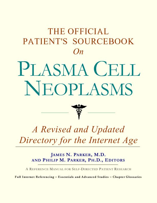 Since the late 1990s, physicians have seen a general increase in patient Internet usage rates. Patients frequently enter their doctor’s offices with printed Web pages of home remedies in the guise of latest medical research. This scenario is so common that doctors often spend more time dispelling misleading information than guiding patients through sound therapies. The Official Patient’s Sourcebook on Plasma Cell Neoplasms has been created for patients who have decided to make education and research an integral part of the treatment process. The pages that follow will tell you where and how to look for information covering virtually all topics related to plasma cell neoplasms, from the essentials to the most advanced areas of research. The title of this book includes the word “official.” This reflects the fact that the sourcebook draws from public, academic, government, and peer-reviewed research. Selected readings from various agencies are reproduced to give you some of the latest official information available to date on plasma cell neoplasms. Given patients’ increasing sophistication in using the Internet, abundant references to reliable Internet-based resources are provided throughout this sourcebook. Where possible, guidance is provided on how to obtain free-of-charge, primary research results as well as more detailed information via the Internet. E-book and electronic versions of this sourcebook are fully interactive with each of the Internet sites mentioned (clicking on a hyperlink automatically opens your browser to the site indicated). Hard copy users of this sourcebook can type cited Web addresses directly into their browsers to obtain access to the corresponding sites. Since we are working with ICON Health Publications, hard copy Sourcebooks are frequently updated and printed on demand to ensure that the information provided is current. In addition to extensive references accessible via the Internet, every chapter presents a “Vocabulary Builder.” Many health guides offer glossaries of technical or uncommon terms in an appendix. In editing this sourcebook, we have decided to place a smaller glossary within each chapter that covers terms used in that chapter. Given the technical nature of some chapters, you may need to revisit many sections. Building one’s vocabulary of medical terms in such a gradual manner has been shown to improve the learning process. We must emphasize that no sourcebook on plasma cell neoplasms should affirm that a specific diagnostic procedure or treatment discussed in a research study, patent, or doctoral dissertation is “correct” or your best option. This sourcebook is no exception. Each patient is unique. Deciding on appropriate options is always up to the patient in consultation with their physician and healthcare providers. Organization This sourcebook is organized into three parts. Part I explores basic techniques to researching plasma cell neoplasms (e.g. finding guidelines on diagnosis, treatments, and prognosis), followed by a number of topics, including information on how to get in touch with organizations, associations, or other patient networks dedicated to plasma cell neoplasms. It also gives you sources of information that can help you find a doctor in your local area specializing in treating plasma cell neoplasms. Collectively, the material presented in Part I is a complete primer on basic research topics for patients with plasma cell neoplasms. Part II moves on to advanced research dedicated to plasma cell neoplasms. Part II is intended for those willing to invest many hours of hard work and study. It is here that we direct you to the latest scientific and applied research on plasma cell neoplasms. When possible, contact names, links via the Internet, and summaries are provided. It is in Part II where the vocabulary process becomes important as authors publishing advanced research frequently use highly specialized language. In general, every attempt is made to recommend “free-to-use” options. Part III provides appendices of useful background reading for all patients with plasma cell neoplasms or related disorders. The appendices are dedicated to more pragmatic issues faced by many patients with plasma cell neoplasms. Accessing materials via medical libraries may be the only option for some readers, so a guide is provided for finding local medical libraries which are open to the public. Part III, therefore, focuses on advice that goes beyond the biological and scientific issues facing patients with plasma cell neoplasms. Scope While this sourcebook covers plasma cell neoplasms, your doctor, research publications, and specialists may refer to your condition using a variety of terms. Therefore, you should understand that plasma cell neoplasms is often considered a synonym or a condition closely related to the following: