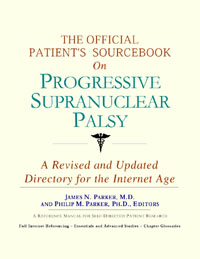 Since the late 1990s, physicians have seen a general increase in patient Internet usage rates. Patients frequently enter their doctor’s offices with printed Web pages of home remedies in the guise of latest medical research. This scenario is so common that doctors often spend more time dispelling misleading information than guiding patients through sound therapies. The Official Patient’s Sourcebook on Progressive Supranuclear Palsy has been created for patients who have decided to make education and research an integral part of the treatment process. The pages that follow will tell you where and how to look for information covering virtually all topics related to progressive supranuclear palsy, from the essentials to the most advanced areas of research. The title of this book includes the word “official.” This reflects the fact that the sourcebook draws from public, academic, government, and peer-reviewed research. Selected readings from various agencies are reproduced to give you some of the latest official information available to date on progressive supranuclear palsy. Given patients’ increasing sophistication in using the Internet, abundant references to reliable Internet-based resources are provided throughout this sourcebook. Where possible, guidance is provided on how to obtain free-of-charge, primary research results as well as more detailed information via the Internet. E-book and electronic versions of this sourcebook are fully interactive with each of the Internet sites mentioned (clicking on a hyperlink automatically opens your browser to the site indicated). Hard copy users of this sourcebook can type cited Web addresses directly into their browsers to obtain access to the corresponding sites. Since we are working with ICON Health Publications, hard copy Sourcebooks are frequently updated and printed on demand to ensure that the information provided is current. In addition to extensive references accessible via the Internet, every chapter presents a “Vocabulary Builder.” Many health guides offer glossaries of technical or uncommon terms in an appendix. In editing this sourcebook, we have decided to place a smaller glossary within each chapter that covers terms used in that chapter. Given the technical nature of some chapters, you may need to revisit many sections. Building one’s vocabulary of medical terms in such a gradual manner has been shown to improve the learning process. We must emphasize that no sourcebook on progressive supranuclear palsy should affirm that a specific diagnostic procedure or treatment discussed in a research study, patent, or doctoral dissertation is “correct” or your best option. This sourcebook is no exception. Each patient is unique. Deciding on appropriate options is always up to the patient in consultation with their physician and healthcare providers. Organization This sourcebook is organized into three parts. Part I explores basic techniques to researching progressive supranuclear palsy (e.g. finding guidelines on diagnosis, treatments, and prognosis), followed by a number of topics, including information on how to get in touch with organizations, associations, or other patient networks dedicated to progressive supranuclear palsy. It also gives you sources of information that can help you find a doctor in your local area specializing in treating progressive supranuclear palsy. Collectively, the material presented in Part I is a complete primer on basic research topics for patients with progressive supranuclear palsy. Part II moves on to advanced research dedicated to progressive supranuclear palsy. Part II is intended for those willing to invest many hours of hard work and study. It is here that we direct you to the latest scientific and applied research on progressive supranuclear palsy. When possible, contact names, links via the Internet, and summaries are provided. It is in Part II where the vocabulary process becomes important as authors publishing advanced research frequently use highly specialized language. In general, every attempt is made to recommend “free-to-use” options. Part III provides appendices of useful background reading for all patients with progressive supranuclear palsy or related disorders. The appendices are dedicated to more pragmatic issues faced by many patients with progressive supranuclear palsy. Accessing materials via medical libraries may be the only option for some readers, so a guide is provided for finding local medical libraries which are open to the public. Part III, therefore, focuses on advice that goes beyond the biological and scientific issues facing patients with progressive supranuclear palsy. Scope While this sourcebook covers progressive supranuclear palsy, your doctor, research publications, and specialists may refer to your condition using a variety of terms. Therefore, you should understand that progressive supranuclear palsy is often considered a synonym or a condition closely related to the following: