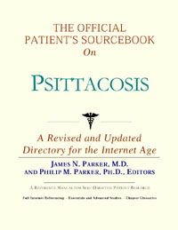 Since the late 1990s, physicians have seen a general increase in patient Internet usage rates. Patients frequently enter their doctor’s offices with printed Web pages of home remedies in the guise of latest medical research. This scenario is so common that doctors often spend more time dispelling misleading information than guiding patients through sound therapies. The Official Patient’s Sourcebook on Psittacosis has been created for patients who have decided to make education and research an integral part of the treatment process. The pages that follow will tell you where and how to look for information covering virtually all topics related to psittacosis, from the essentials to the most advanced areas of research. The title of this book includes the word “official.” This reflects the fact that the sourcebook draws from public, academic, government, and peer-reviewed research. Selected readings from various agencies are reproduced to give you some of the latest official information available to date on psittacosis. Given patients’ increasing sophistication in using the Internet, abundant references to reliable Internet-based resources are provided throughout this sourcebook. Where possible, guidance is provided on how to obtain free-of-charge, primary research results as well as more detailed information via the Internet. E-book and electronic versions of this sourcebook are fully interactive with each of the Internet sites mentioned (clicking on a hyperlink automatically opens your browser to the site indicated). Hard copy users of this sourcebook can type cited Web addresses directly into their browsers to obtain access to the corresponding sites. Since we are working with ICON Health Publications, hard copy Sourcebooks are frequently updated and printed on demand to ensure that the information provided is current. In addition to extensive references accessible via the Internet, every chapter presents a “Vocabulary Builder.” Many health guides offer glossaries of technical or uncommon terms in an appendix. In editing this sourcebook, we have decided to place a smaller glossary within each chapter that covers terms used in that chapter. Given the technical nature of some chapters, you may need to revisit many sections. Building one’s vocabulary of medical terms in such a gradual manner has been shown to improve the learning process. We must emphasize that no sourcebook on psittacosis should affirm that a specific diagnostic procedure or treatment discussed in a research study, patent, or doctoral dissertation is “correct” or your best option. This sourcebook is no exception. Each patient is unique. Deciding on appropriate options is always up to the patient in consultation with their physician and healthcare providers. Organization This sourcebook is organized into three parts. Part I explores basic techniques to researching psittacosis (e.g. finding guidelines on diagnosis, treatments, and prognosis), followed by a number of topics, including information on how to get in touch with organizations, associations, or other patient networks dedicated to psittacosis. It also gives you sources of information that can help you find a doctor in your local area specializing in treating psittacosis. Collectively, the material presented in Part I is a complete primer on basic research topics for patients with psittacosis. Part II moves on to advanced research dedicated to psittacosis. Part II is intended for those willing to invest many hours of hard work and study. It is here that we direct you to the latest scientific and applied research on psittacosis. When possible, contact names, links via the Internet, and summaries are provided. It is in Part II where the vocabulary process becomes important as authors publishing advanced research frequently use highly specialized language. In general, every attempt is made to recommend “free-to-use” options. Part III provides appendices of useful background reading for all patients with psittacosis or related disorders. The appendices are dedicated to more pragmatic issues faced by many patients with psittacosis. Accessing materials via medical libraries may be the only option for some readers, so a guide is provided for finding local medical libraries which are open to the public. Part III, therefore, focuses on advice that goes beyond the biological and scientific issues facing patients with psittacosis. Scope While this sourcebook covers psittacosis, your doctor, research publications, and specialists may refer to your condition using a variety of terms. Therefore, you should understand that psittacosis is often considered a synonym or a condition closely related to the following: