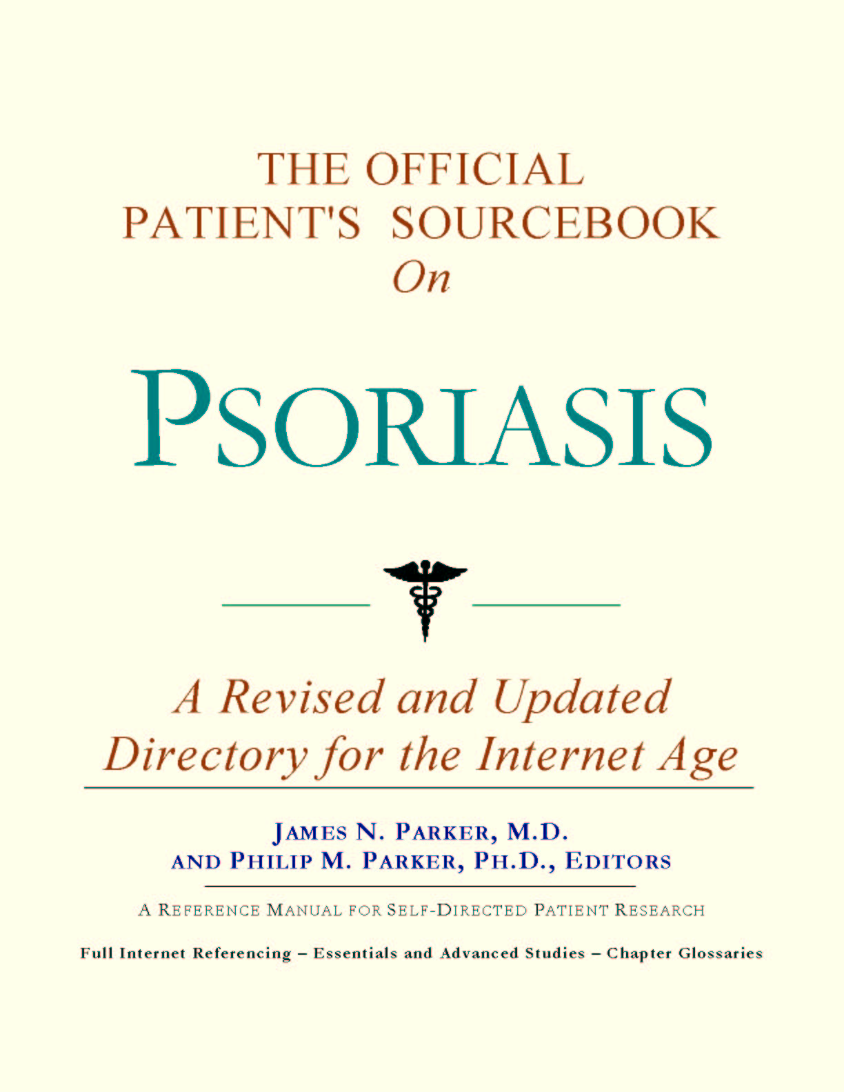 Since the late 1990s, physicians have seen a general increase in patient Internet usage rates. Patients frequently enter their doctor's offices with printed Web pages of home remedies in the guise of latest medical research. This scenario is so common that doctors often spend more time dispelling misleading information than guiding patients through sound therapies. The Official Patient’s Sourcebook on Psoriasis has been created for patients who have decided to make education and research an integral part of the treatment process. The pages that follow will tell you where and how to look for information covering virtually all topics related to psoriasis, from the essentials to the most advanced areas of research. The title of this book includes the word “official.” This reflects the fact that the sourcebook draws from public, academic, government, and peer-reviewed research. Selected readings from various agencies are reproduced to give you some of the latest official information available to date on psoriasis. Given patients’ increasing sophistication in using the Internet, abundant references to reliable Internet-based resources are provided throughout this sourcebook. Where possible, guidance is provided on how to obtain free-of-charge, primary research results as well as more detailed information via the Internet. E-book and electronic versions of this sourcebook are fully interactive with each of the Internet sites mentioned (clicking on a hyperlink automatically opens your browser to the site indicated). Hard copy users of this sourcebook can type cited Web addresses directly into their browsers to obtain access to the corresponding sites. Since we are working with ICON Health Publications, hard copy Sourcebooks are frequently updated and printed on demand to ensure that the information provided is current. In addition to extensive references accessible via the Internet, every chapter presents a “Vocabulary Builder.” Many health guides offer glossaries of technical or uncommon terms in an appendix. In editing this sourcebook, we have decided to place a smaller glossary within each chapter that covers terms used in that chapter. Given the technical nature of some chapters, you may need to revisit many sections. Building one’s vocabulary of medical terms in such a gradual manner has been shown to improve the learning process. We must emphasize that no sourcebook on psoriasis should affirm that a specific diagnostic procedure or treatment discussed in a research study, patent, or doctoral dissertation is “correct” or your best option. This sourcebook is no exception. Each patient is unique. Deciding on appropriate options is always up to the patient in consultation with their physician and healthcare providers. Organization This sourcebook is organized into three parts. Part I explores basic techniques to researching psoriasis (e.g. finding guidelines on diagnosis, treatments, and prognosis), followed by a number of topics, including information on how to get in touch with organizations, associations, or other patient networks dedicated to psoriasis. It also gives you sources of information that can help you find a doctor in your local area specializing in treating psoriasis. Collectively, the material presented in Part I is a complete primer on basic research topics for patients with psoriasis. Part II moves on to advanced research dedicated to psoriasis. Part II is intended for those willing to invest many hours of hard work and study. It is here that we direct you to the latest scientific and applied research on psoriasis. When possible, contact names, links via the Internet, and summaries are provided. It is in Part II where the vocabulary process becomes important as authors publishing advanced research frequently use highly specialized language. In general, every attempt is made to recommend “free-to-use” options. Part III provides appendices of useful background reading for all patients with psoriasis or related disorders. The appendices are dedicated to more pragmatic issues faced by many patients with psoriasis. Accessing materials via medical libraries may be the only option for some readers, so a guide is provided for finding local medical libraries which are open to the public. Part III, therefore, focuses on advice that goes beyond the biological and scientific issues facing patients with psoriasis. Scope While this sourcebook covers psoriasis, your doctor, research publications, and specialists may refer to your condition using a variety of terms. Therefore, you should understand that psoriasis is often considered a synonym or a condition closely related to the following: