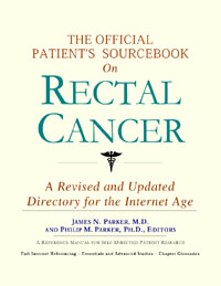 Since the late 1990s, physicians have seen a general increase in patient Internet usage rates. Patients frequently enter their doctor’s offices with printed Web pages of home remedies in the guise of latest medical research. This scenario is so common that doctors often spend more time dispelling misleading information than guiding patients through sound therapies. The Official Patient’s Sourcebook on Rectal Cancer has been created for patients who have decided to make education and research an integral part of the treatment process. The pages that follow will tell you where and how to look for information covering virtually all topics related to rectal cancer, from the essentials to the most advanced areas of research. The title of this book includes the word “official.” This reflects the fact that the sourcebook draws from public, academic, government, and peer-reviewed research. Selected readings from various agencies are reproduced to give you some of the latest official information available to date on rectal cancer. Given patients’ increasing sophistication in using the Internet, abundant references to reliable Internet-based resources are provided throughout this sourcebook. Where possible, guidance is provided on how to obtain free-of-charge, primary research results as well as more detailed information via the Internet. E-book and electronic versions of this sourcebook are fully interactive with each of the Internet sites mentioned (clicking on a hyperlink automatically opens your browser to the site indicated). Hard copy users of this sourcebook can type cited Web addresses directly into their browsers to obtain access to the corresponding sites. Since we are working with ICON Health Publications, hard copy Sourcebooks are frequently updated and printed on demand to ensure that the information provided is current. In addition to extensive references accessible via the Internet, every chapter presents a “Vocabulary Builder.” Many health guides offer glossaries of technical or uncommon terms in an appendix. In editing this sourcebook, we have decided to place a smaller glossary within each chapter that covers terms used in that chapter. Given the technical nature of some chapters, you may need to revisit many sections. Building one’s vocabulary of medical terms in such a gradual manner has been shown to improve the learning process. We must emphasize that no sourcebook on rectal cancer should affirm that a specific diagnostic procedure or treatment discussed in a research study, patent, or doctoral dissertation is “correct” or your best option. This sourcebook is no exception. Each patient is unique. Deciding on appropriate options is always up to the patient in consultation with their physician and healthcare providers. Organization This sourcebook is organized into three parts. Part I explores basic techniques to researching rectal cancer (e.g. finding guidelines on diagnosis, treatments, and prognosis), followed by a number of topics, including information on how to get in touch with organizations, associations, or other patient networks dedicated to rectal cancer. It also gives you sources of information that can help you find a doctor in your local area specializing in treating rectal cancer. Collectively, the material presented in Part I is a complete primer on basic research topics for patients with rectal cancer. Part II moves on to advanced research dedicated to rectal cancer. Part II is intended for those willing to invest many hours of hard work and study. It is here that we direct you to the latest scientific and applied research on rectal cancer. When possible, contact names, links via the Internet, and summaries are provided. It is in Part II where the vocabulary process becomes important as authors publishing advanced research frequently use highly specialized language. In general, every attempt is made to recommend “free-to-use” options. Part III provides appendices of useful background reading for all patients with rectal cancer or related disorders. The appendices are dedicated to more pragmatic issues faced by many patients with rectal cancer. Accessing materials via medical libraries may be the only option for some readers, so a guide is provided for finding local medical libraries which are open to the public. Part III, therefore, focuses on advice that goes beyond the biological and scientific issues facing patients with rectal cancer. Scope While this sourcebook covers rectal cancer, your doctor, research publications, and specialists may refer to your condition using a variety of terms. Therefore, you should understand that rectal cancer is often considered a synonym or a condition closely related to the following: