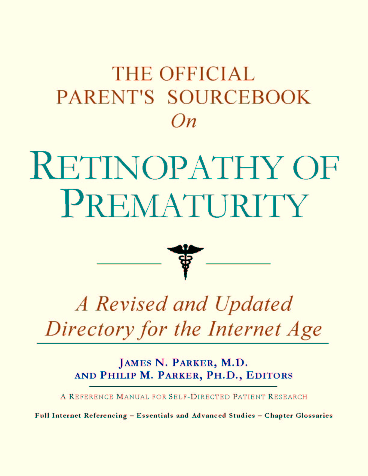 Since the late 1990s, physicians have seen a general increase in parent Internet usage rates. Parents frequently enter their children’s doctor's offices with printed Web pages of home remedies in the guise of latest medical research. This scenario is so common that doctors often spend more time dispelling misleading information than guiding children through sound therapies. The Official Parent’s Sourcebook on Retinopathy of Prematurity has been created for parents who have decided to make education and research an integral part of the treatment process. The pages that follow will tell you where and how to look for information covering virtually all topics related to retinopathy of prematurity, from the essentials to the most advanced areas of research. The title of this book includes the word “official.” This reflects the fact that the sourcebook draws from public, academic, government, and peer-reviewed research. Selected readings from various agencies are reproduced to give you some of the latest official information available to date on retinopathy of prematurity. Given parents’ increasing sophistication in using the Internet, abundant references to reliable Internet-based resources are provided throughout this sourcebook. Where possible, guidance is provided on how to obtain free-of-charge, primary research results as well as more detailed information via the Internet. E-book and electronic versions of this sourcebook are fully interactive with each of the Internet sites mentioned (clicking on a hyperlink automatically opens your browser to the site indicated). Hard copy users of this sourcebook can type cited Web addresses directly into their browsers to obtain access to the corresponding sites. Since we are working with ICON Health Publications, hard copy Sourcebooks are frequently updated and printed on demand to ensure that the information provided is current. In addition to extensive references accessible via the Internet, every chapter presents a “Vocabulary Builder.” Many health guides offer glossaries of technical or uncommon terms in an appendix. In editing this sourcebook, we have decided to place a smaller glossary within each chapter that covers terms used in that chapter. Given the technical nature of some chapters, you may need to revisit many sections. Building one’s vocabulary of medical terms in such a gradual manner has been shown to improve the learning process. We must emphasize that no sourcebook on retinopathy of prematurity should affirm that a specific diagnostic procedure or treatment discussed in a research study, patent, or doctoral dissertation is “correct” or your child’s best option. This sourcebook is no exception. Each child is unique. Deciding on appropriate options is always up to parents in consultation with their children’s physicians and healthcare providers. Organization This sourcebook is organized into three parts. Part I explores basic techniques to researching retinopathy of prematurity (e.g. finding guidelines on diagnosis, treatments, and prognosis), followed by a number of topics, including information on how to get in touch with organizations, associations, or other parent networks dedicated to retinopathy of prematurity. It also gives you sources of information that can help you find a doctor in your local area specializing in treating retinopathy of prematurity. Collectively, the material presented in Part I is a complete primer on basic research topics for retinopathy of prematurity. Part II moves on to advanced research dedicated to retinopathy of prematurity. Part II is intended for those willing to invest many hours of hard work and study. It is here that we direct you to the latest scientific and applied research on retinopathy of prematurity. When possible, contact names, links via the Internet, and summaries are provided. It is in Part II where the vocabulary process becomes important as authors publishing advanced research frequently use highly specialized language. In general, every attempt is made to recommend “free-to-use” options. Part III provides appendices of useful background reading covering retinopathy of prematurity or related disorders. The appendices are dedicated to more pragmatic issues facing parents. Accessing materials via medical libraries may be the only option for some parents, so a guide is provided for finding local medical libraries which are open to the public. Part III, therefore, focuses on advice that goes beyond the biological and scientific issues facing children with retinopathy of prematurity and their families. Scope While this sourcebook covers retinopathy of prematurity, doctors, research publications, and specialists may refer to your child’s condition using a variety of terms. Therefore, you should understand that retinopathy of prematurity is often considered a synonym or a condition closely related to the following: