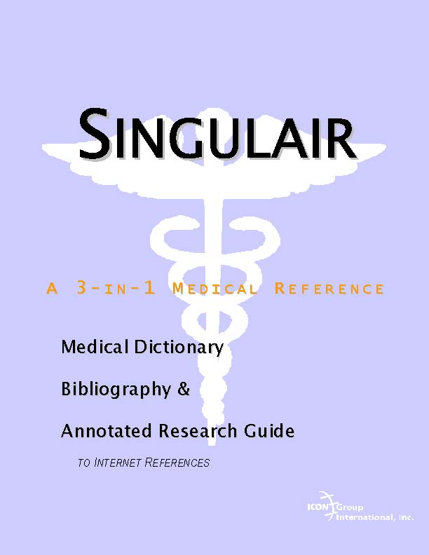 Forward Chapter 1. Studies on Singulair Overview Federally Funded Research on Singulair E-Journals: PubMed Central The National Library of Medicine: PubMed Chapter 2. Nutrition and Singulair Overview Finding Nutrition Studies on Singulair Federal Resources on Nutrition Additional Web Resources Chapter 3. Alternative Medicine and Singulair Overview National Center for Complementary and Alternative Medicine Additional Web Resources General References Chapter 4. Clinical Trials and Singulair Overview Recent Trials on Singulair Keeping Current on Clinical Trials Chapter 5. Patents on Singulair Overview Patent Applications on Singulair Keeping Current Chapter 6. Periodicals and News on Singulair Overview News Services and Press Releases Academic Periodicals covering Singulair Chapter 7. Researching Medications Overview U.S. Pharmacopeia Commercial Databases Appendix A. Physician Resources Overview NIH Guidelines NIH Databases Other Commercial Databases Appendix B. Patient Resources Overview Patient Guideline Sources Finding Associations Appendix C. Finding Medical Libraries Overview Preparation Finding a Local Medical Library Medical Libraries in the U.S. and Canada ONLINE GLOSSARIES Online Dictionary Directories SINGULAIR DICTIONARY INDEX |