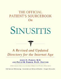 Since the late 1990s, physicians have seen a general increase in patient Internet usage rates. Patients frequently enter their doctor’s offices with printed Web pages of home remedies in the guise of latest medical research. This scenario is so common that doctors often spend more time dispelling misleading information than guiding patients through sound therapies. The Official Patient’s Sourcebook on Sinusitis has been created for patients who have decided to make education and research an integral part of the treatment process. The pages that follow will tell you where and how to look for information covering virtually all topics related to sinusitis, from the essentials to the most advanced areas of research. The title of this book includes the word “official.” This reflects the fact that the sourcebook draws from public, academic, government, and peer-reviewed research. Selected readings from various agencies are reproduced to give you some of the latest official information available to date on sinusitis. Given patients’ increasing sophistication in using the Internet, abundant references to reliable Internet-based resources are provided throughout this sourcebook. Where possible, guidance is provided on how to obtain free-of-charge, primary research results as well as more detailed information via the Internet. E-book and electronic versions of this sourcebook are fully interactive with each of the Internet sites mentioned (clicking on a hyperlink automatically opens your browser to the site indicated). Hard copy users of this sourcebook can type cited Web addresses directly into their browsers to obtain access to the corresponding sites. Since we are working with ICON Health Publications, hard copy Sourcebooks are frequently updated and printed on demand to ensure that the information provided is current. In addition to extensive references accessible via the Internet, every chapter presents a “Vocabulary Builder.” Many health guides offer glossaries of technical or uncommon terms in an appendix. In editing this sourcebook, we have decided to place a smaller glossary within each chapter that covers terms used in that chapter. Given the technical nature of some chapters, you may need to revisit many sections. Building one’s vocabulary of medical terms in such a gradual manner has been shown to improve the learning process. We must emphasize that no sourcebook on sinusitis should affirm that a specific diagnostic procedure or treatment discussed in a research study, patent, or doctoral dissertation is “correct” or your best option. This sourcebook is no exception. Each patient is unique. Deciding on appropriate options is always up to the patient in consultation with their physician and healthcare providers. Organization This sourcebook is organized into three parts. Part I explores basic techniques to researching sinusitis (e.g. finding guidelines on diagnosis, treatments, and prognosis), followed by a number of topics, including information on how to get in touch with organizations, associations, or other patient networks dedicated to sinusitis. It also gives you sources of information that can help you find a doctor in your local area specializing in treating sinusitis. Collectively, the material presented in Part I is a complete primer on basic research topics for patients with sinusitis. Part II moves on to advanced research dedicated to sinusitis. Part II is intended for those willing to invest many hours of hard work and study. It is here that we direct you to the latest scientific and applied research on sinusitis. When possible, contact names, links via the Internet, and summaries are provided. It is in Part II where the vocabulary process becomes important as authors publishing advanced research frequently use highly specialized language. In general, every attempt is made to recommend “free-to-use” options. Part III provides appendices of useful background reading for all patients with sinusitis or related disorders. The appendices are dedicated to more pragmatic issues faced by many patients with sinusitis. Accessing materials via medical libraries may be the only option for some readers, so a guide is provided for finding local medical libraries which are open to the public. Part III, therefore, focuses on advice that goes beyond the biological and scientific issues facing patients with sinusitis. Scope While this sourcebook covers sinusitis, your doctor, research publications, and specialists may refer to your condition using a variety of terms. Therefore, you should understand that sinusitis is often considered a synonym or a condition closely related to the following: