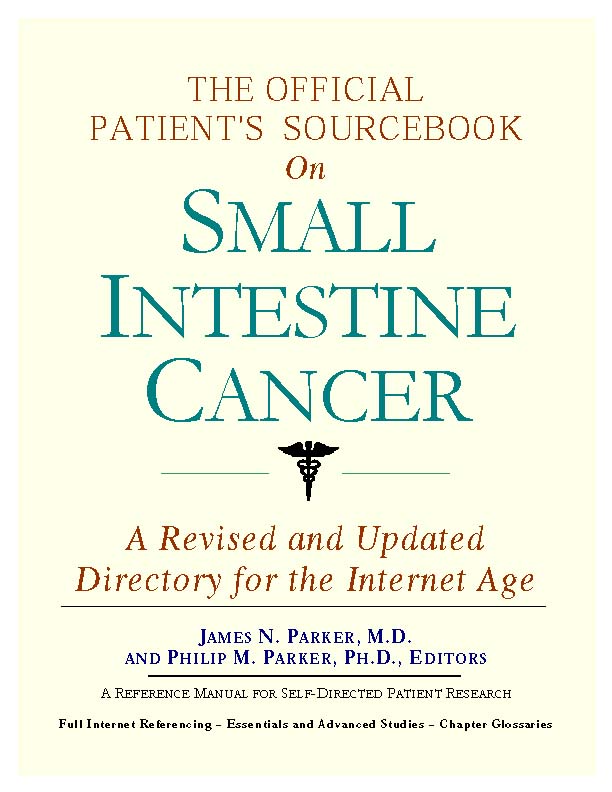 Since the late 1990s, physicians have seen a general increase in patient Internet usage rates. Patients frequently enter their doctor's offices with printed Web pages of home remedies in the guise of latest medical research. This scenario is so common that doctors often spend more time dispelling misleading information than guiding patients through sound therapies. The Official Patient’s Sourcebook on Small Intestine Cancer has been created for patients who have decided to make education and research an integral part of the treatment process. The pages that follow will tell you where and how to look for information covering virtually all topics related to small intestine cancer, from the essentials to the most advanced areas of research. The title of this book includes the word “official.” This reflects the fact that the sourcebook draws from public, academic, government, and peer-reviewed research. Selected readings from various agencies are reproduced to give you some of the latest official information available to date on small intestine cancer. Given patients’ increasing sophistication in using the Internet, abundant references to reliable Internet-based resources are provided throughout this sourcebook. Where possible, guidance is provided on how to obtain free-of-charge, primary research results as well as more detailed information via the Internet. E-book and electronic versions of this sourcebook are fully interactive with each of the Internet sites mentioned (clicking on a hyperlink automatically opens your browser to the site indicated). Hard copy users of this sourcebook can type cited Web addresses directly into their browsers to obtain access to the corresponding sites. Since we are working with ICON Health Publications, hard copy Sourcebooks are frequently updated and printed on demand to ensure that the information provided is current. In addition to extensive references accessible via the Internet, every chapter presents a “Vocabulary Builder.” Many health guides offer glossaries of technical or uncommon terms in an appendix. In editing this sourcebook, we have decided to place a smaller glossary within each chapter that covers terms used in that chapter. Given the technical nature of some chapters, you may need to revisit many sections. Building one’s vocabulary of medical terms in such a gradual manner has been shown to improve the learning process. We must emphasize that no sourcebook on small intestine cancer should affirm that a specific diagnostic procedure or treatment discussed in a research study, patent, or doctoral dissertation is “correct” or your best option. This sourcebook is no exception. Each patient is unique. Deciding on appropriate options is always up to the patient in consultation with their physician and healthcare providers. Organization This sourcebook is organized into three parts. Part I explores basic techniques to researching small intestine cancer (e.g. finding guidelines on diagnosis, treatments, and prognosis), followed by a number of topics, including information on how to get in touch with organizations, associations, or other patient networks dedicated to small intestine cancer. It also gives you sources of information that can help you find a doctor in your local area specializing in treating small intestine cancer. Collectively, the material presented in Part I is a complete primer on basic research topics for patients with small intestine cancer. Part II moves on to advanced research dedicated to small intestine cancer. Part II is intended for those willing to invest many hours of hard work and study. It is here that we direct you to the latest scientific and applied research on small intestine cancer. When possible, contact names, links via the Internet, and summaries are provided. It is in Part II where the vocabulary process becomes important as authors publishing advanced research frequently use highly specialized language. In general, every attempt is made to recommend “free-to-use” options. Part III provides appendices of useful background reading for all patients with small intestine cancer or related disorders. The appendices are dedicated to more pragmatic issues faced by many patients with small intestine cancer. Accessing materials via medical libraries may be the only option for some readers, so a guide is provided for finding local medical libraries which are open to the public. Part III, therefore, focuses on advice that goes beyond the biological and scientific issues facing patients with small intestine cancer. Scope While this sourcebook covers small intestine cancer, your doctor, research publications, and specialists may refer to your condition using a variety of terms. Therefore, you should understand that small intestine cancer is often considered a synonym or a condition closely related to the following: