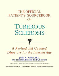 Since the late 1990s, physicians have seen a general increase in patient Internet usage rates. Patients frequently enter their doctor’s offices with printed Web pages of home remedies in the guise of latest medical research. This scenario is so common that doctors often spend more time dispelling misleading information than guiding patients through sound therapies. The Official Patient’s Sourcebook on Tuberous Sclerosis has been created for patients who have decided to make education and research an integral part of the treatment process. The pages that follow will tell you where and how to look for information covering virtually all topics related to tuberous sclerosis, from the essentials to the most advanced areas of research. The title of this book includes the word “official.” This reflects the fact that the sourcebook draws from public, academic, government, and peer-reviewed research. Selected readings from various agencies are reproduced to give you some of the latest official information available to date on tuberous sclerosis. Given patients’ increasing sophistication in using the Internet, abundant references to reliable Internet-based resources are provided throughout this sourcebook. Where possible, guidance is provided on how to obtain free-of-charge, primary research results as well as more detailed information via the Internet. E-book and electronic versions of this sourcebook are fully interactive with each of the Internet sites mentioned (clicking on a hyperlink automatically opens your browser to the site indicated). Hard copy users of this sourcebook can type cited Web addresses directly into their browsers to obtain access to the corresponding sites. Since we are working with ICON Health Publications, hard copy Sourcebooks are frequently updated and printed on demand to ensure that the information provided is current. In addition to extensive references accessible via the Internet, every chapter presents a “Vocabulary Builder.” Many health guides offer glossaries of technical or uncommon terms in an appendix. In editing this sourcebook, we have decided to place a smaller glossary within each chapter that covers terms used in that chapter. Given the technical nature of some chapters, you may need to revisit many sections. Building one’s vocabulary of medical terms in such a gradual manner has been shown to improve the learning process. We must emphasize that no sourcebook on tuberous sclerosis should affirm that a specific diagnostic procedure or treatment discussed in a research study, patent, or doctoral dissertation is “correct” or your best option. This sourcebook is no exception. Each patient is unique. Deciding on appropriate options is always up to the patient in consultation with their physician and healthcare providers. Organization This sourcebook is organized into three parts. Part I explores basic techniques to researching tuberous sclerosis (e.g. finding guidelines on diagnosis, treatments, and prognosis), followed by a number of topics, including information on how to get in touch with organizations, associations, or other patient networks dedicated to tuberous sclerosis. It also gives you sources of information that can help you find a doctor in your local area specializing in treating tuberous sclerosis. Collectively, the material presented in Part I is a complete primer on basic research topics for patients with tuberous sclerosis. Part II moves on to advanced research dedicated to tuberous sclerosis. Part II is intended for those willing to invest many hours of hard work and study. It is here that we direct you to the latest scientific and applied research on tuberous sclerosis. When possible, contact names, links via the Internet, and summaries are provided. It is in Part II where the vocabulary process becomes important as authors publishing advanced research frequently use highly specialized language. In general, every attempt is made to recommend “free-to-use” options. Part III provides appendices of useful background reading for all patients with tuberous sclerosis or related disorders. The appendices are dedicated to more pragmatic issues faced by many patients with tuberous sclerosis. Accessing materials via medical libraries may be the only option for some readers, so a guide is provided for finding local medical libraries which are open to the public. Part III, therefore, focuses on advice that goes beyond the biological and scientific issues facing patients with tuberous sclerosis. Scope While this sourcebook covers tuberous sclerosis, your doctor, research publications, and specialists may refer to your condition using a variety of terms. Therefore, you should understand that tuberous sclerosis is often considered a synonym or a condition closely related to the following: