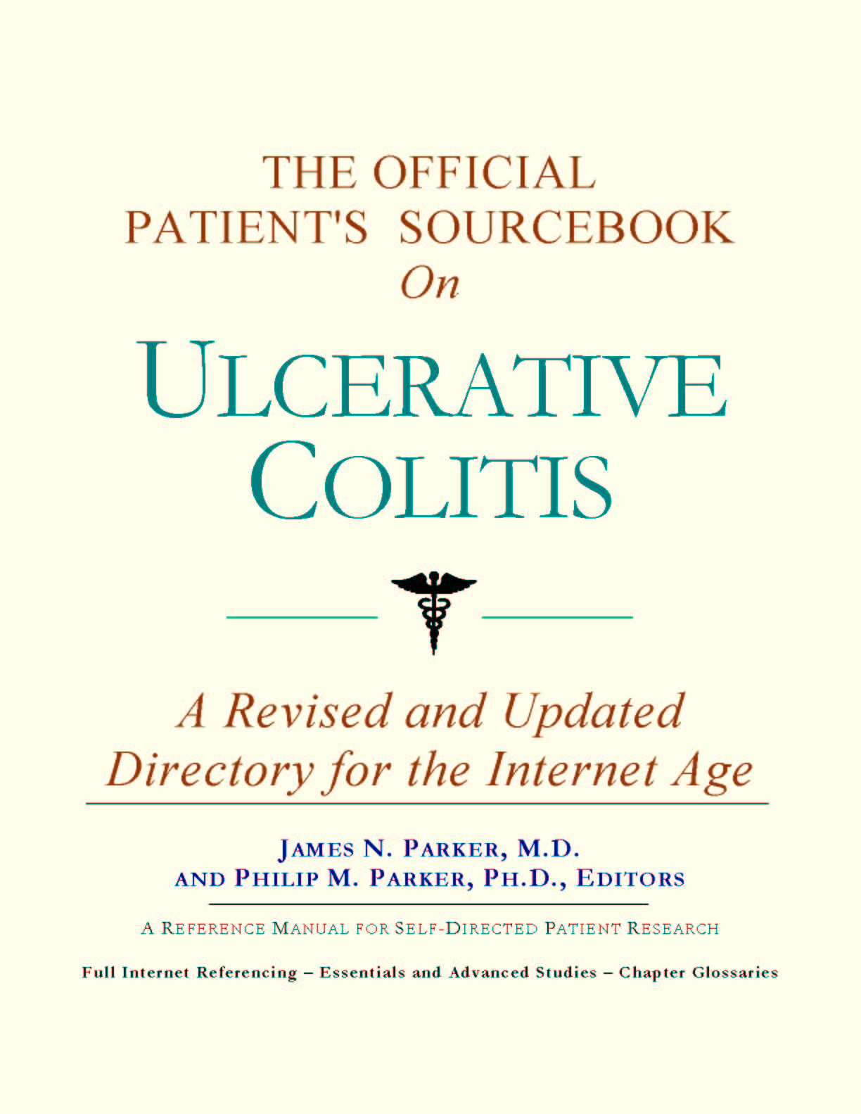 Since the late 1990s, physicians have seen a general increase in patient Internet usage rates. Patients frequently enter their doctor's offices with printed Web pages of home remedies in the guise of latest medical research. This scenario is so common that doctors often spend more time dispelling misleading information than guiding patients through sound therapies. The Official Patient’s Sourcebook on Ulcerative Colitis has been created for patients who have decided to make education and research an integral part of the treatment process. The pages that follow will tell you where and how to look for information covering virtually all topics related to ulcerative colitis, from the essentials to the most advanced areas of research. The title of this book includes the word “official.” This reflects the fact that the sourcebook draws from public, academic, government, and peer-reviewed research. Selected readings from various agencies are reproduced to give you some of the latest official information available to date on ulcerative colitis. Given patients’ increasing sophistication in using the Internet, abundant references to reliable Internet-based resources are provided throughout this sourcebook. Where possible, guidance is provided on how to obtain free-of-charge, primary research results as well as more detailed information via the Internet. E-book and electronic versions of this sourcebook are fully interactive with each of the Internet sites mentioned (clicking on a hyperlink automatically opens your browser to the site indicated). Hard copy users of this sourcebook can type cited Web addresses directly into their browsers to obtain access to the corresponding sites. Since we are working with ICON Health Publications, hard copy Sourcebooks are frequently updated and printed on demand to ensure that the information provided is current. In addition to extensive references accessible via the Internet, every chapter presents a “Vocabulary Builder.” Many health guides offer glossaries of technical or uncommon terms in an appendix. In editing this sourcebook, we have decided to place a smaller glossary within each chapter that covers terms used in that chapter. Given the technical nature of some chapters, you may need to revisit many sections. Building one’s vocabulary of medical terms in such a gradual manner has been shown to improve the learning process. We must emphasize that no sourcebook on ulcerative colitis should affirm that a specific diagnostic procedure or treatment discussed in a research study, patent, or doctoral dissertation is “correct” or your best option. This sourcebook is no exception. Each patient is unique. Deciding on appropriate options is always up to the patient in consultation with their physician and healthcare providers. Organization This sourcebook is organized into three parts. Part I explores basic techniques to researching ulcerative colitis (e.g. finding guidelines on diagnosis, treatments, and prognosis), followed by a number of topics, including information on how to get in touch with organizations, associations, or other patient networks dedicated to ulcerative colitis. It also gives you sources of information that can help you find a doctor in your local area specializing in treating ulcerative colitis. Collectively, the material presented in Part I is a complete primer on basic research topics for patients with ulcerative colitis. Part II moves on to advanced research dedicated to ulcerative colitis. Part II is intended for those willing to invest many hours of hard work and study. It is here that we direct you to the latest scientific and applied research on ulcerative colitis. When possible, contact names, links via the Internet, and summaries are provided. It is in Part II where the vocabulary process becomes important as authors publishing advanced research frequently use highly specialized language. In general, every attempt is made to recommend “free-to-use” options. Part III provides appendices of useful background reading for all patients with ulcerative colitis or related disorders. The appendices are dedicated to more pragmatic issues faced by many patients with ulcerative colitis. Accessing materials via medical libraries may be the only option for some readers, so a guide is provided for finding local medical libraries which are open to the public. Part III, therefore, focuses on advice that goes beyond the biological and scientific issues facing patients with ulcerative colitis. Scope While this sourcebook covers ulcerative colitis, your doctor, research publications, and specialists may refer to your condition using a variety of terms. Therefore, you should understand that ulcerative colitis is often considered a synonym or a condition closely related to the following: